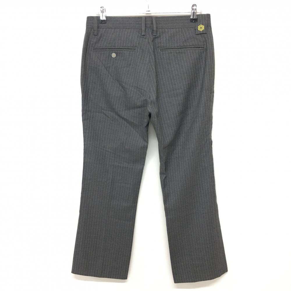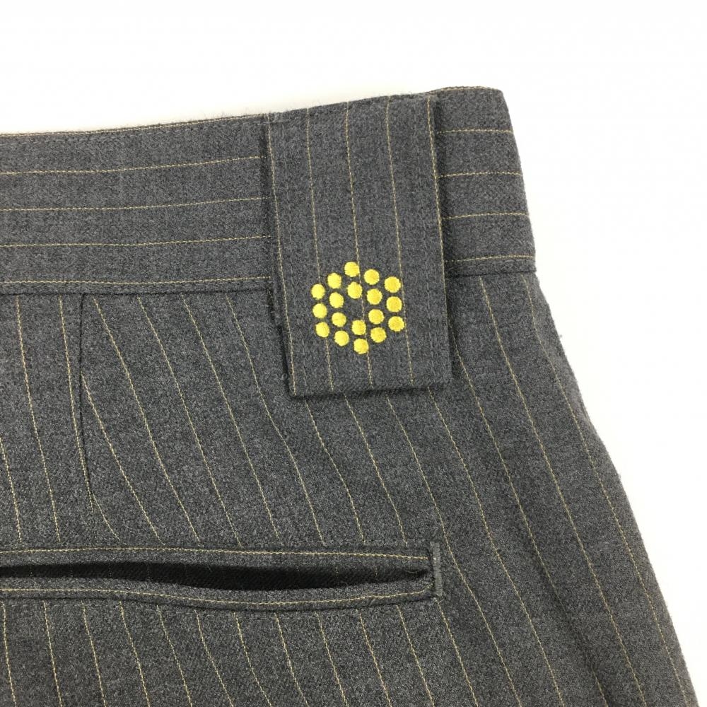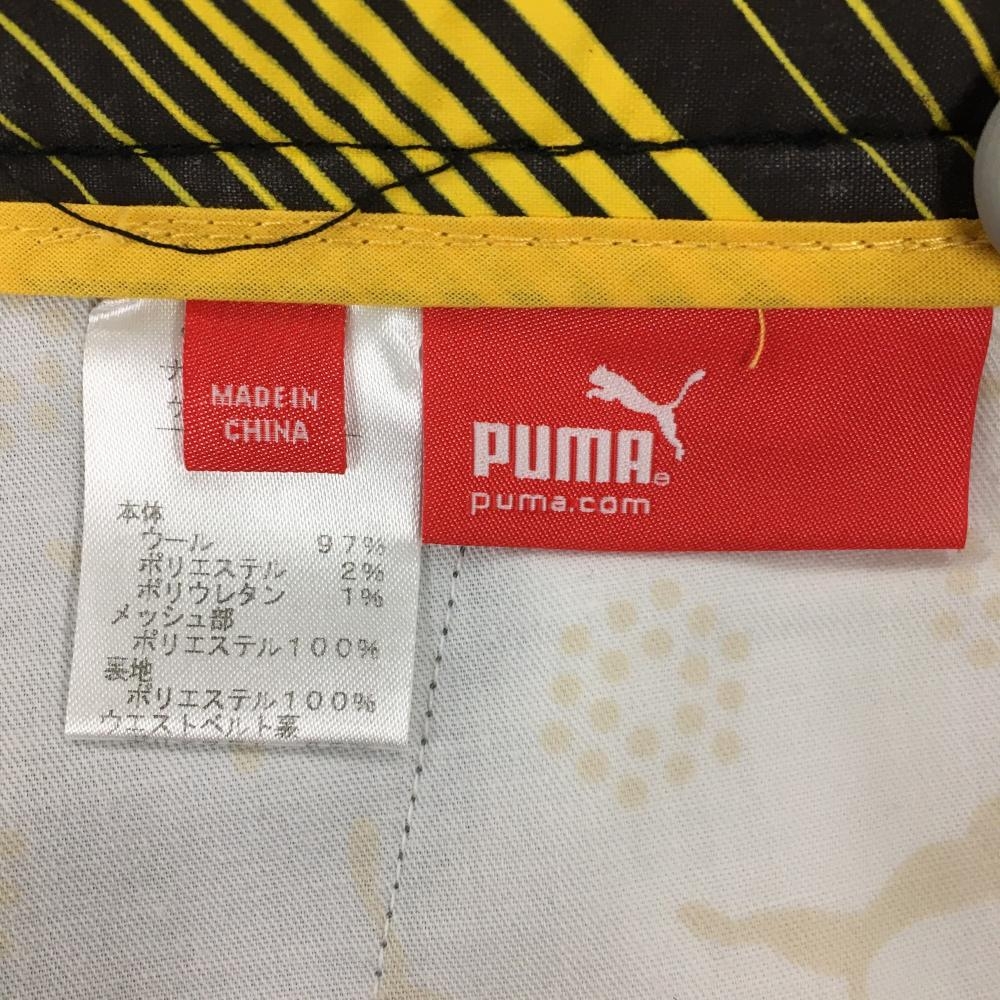 【美品】プーマ パンツ グレー×イエロー ストライプ ロゴ刺しゅう メンズ 82 ゴルフウェア PUMA