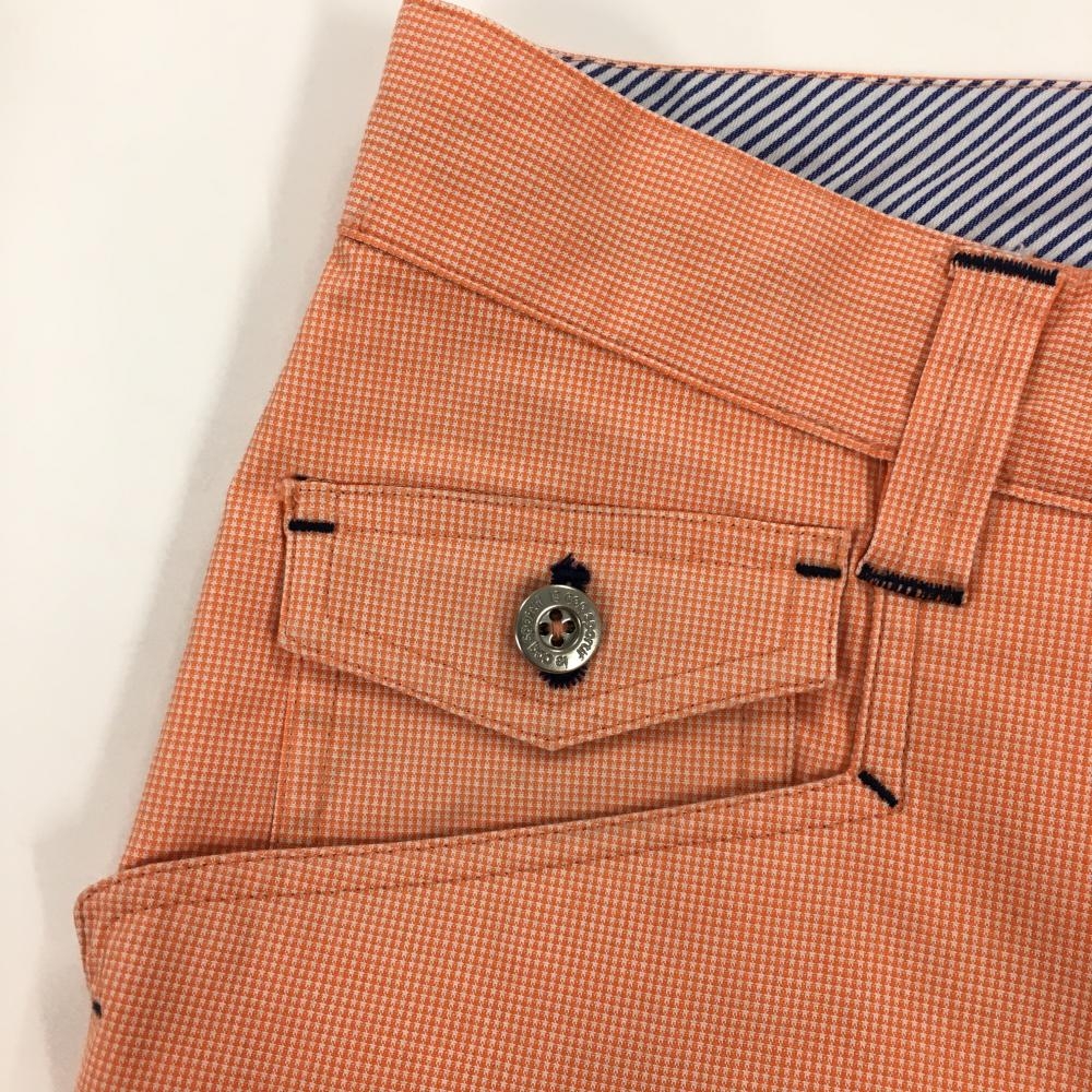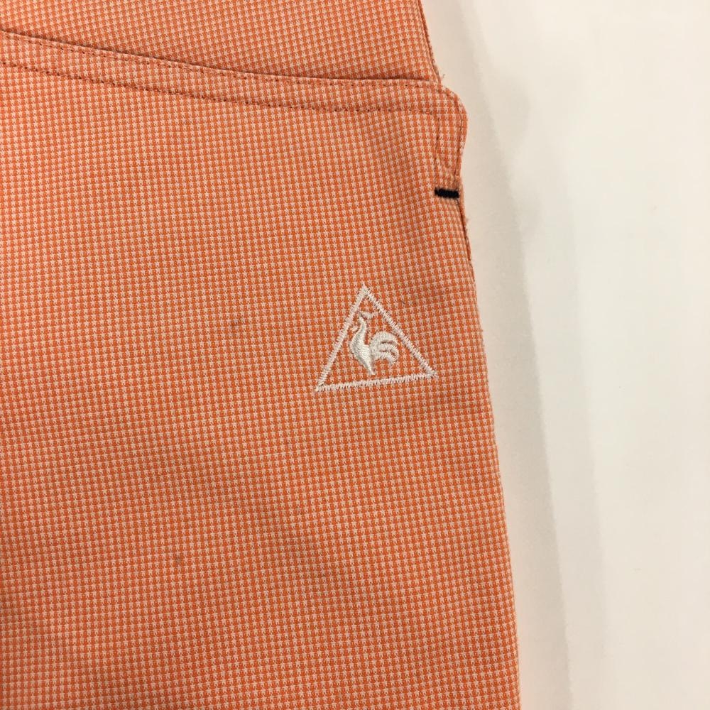 ルコック パンツ オレンジ×白 格子柄 ロゴ刺しゅう メンズ 37 ゴルフウェア le coq sportif