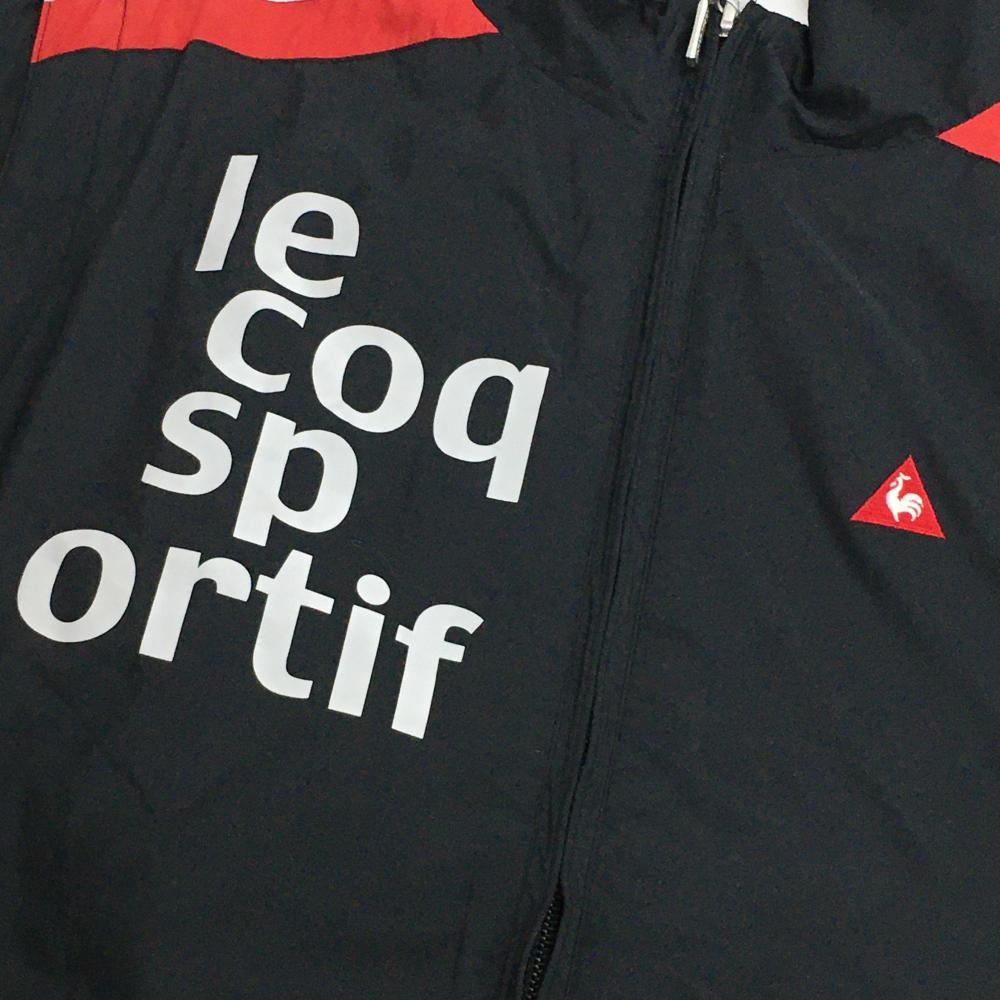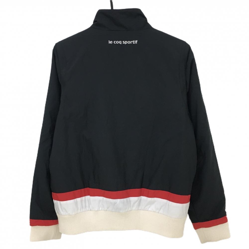 ルコック 2WAY中綿ジャケット 黒×白 ロゴプリント 袖着脱可 レディース L ゴルフウェア le coq sportif