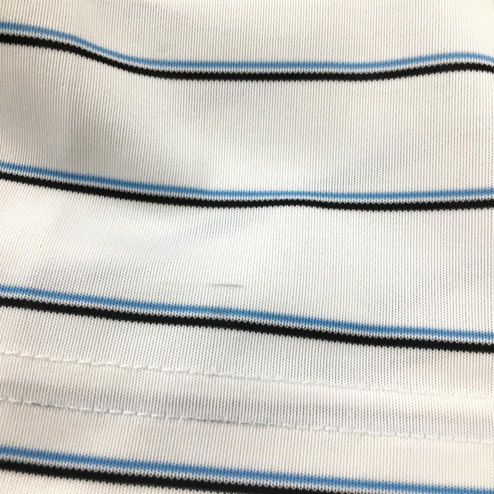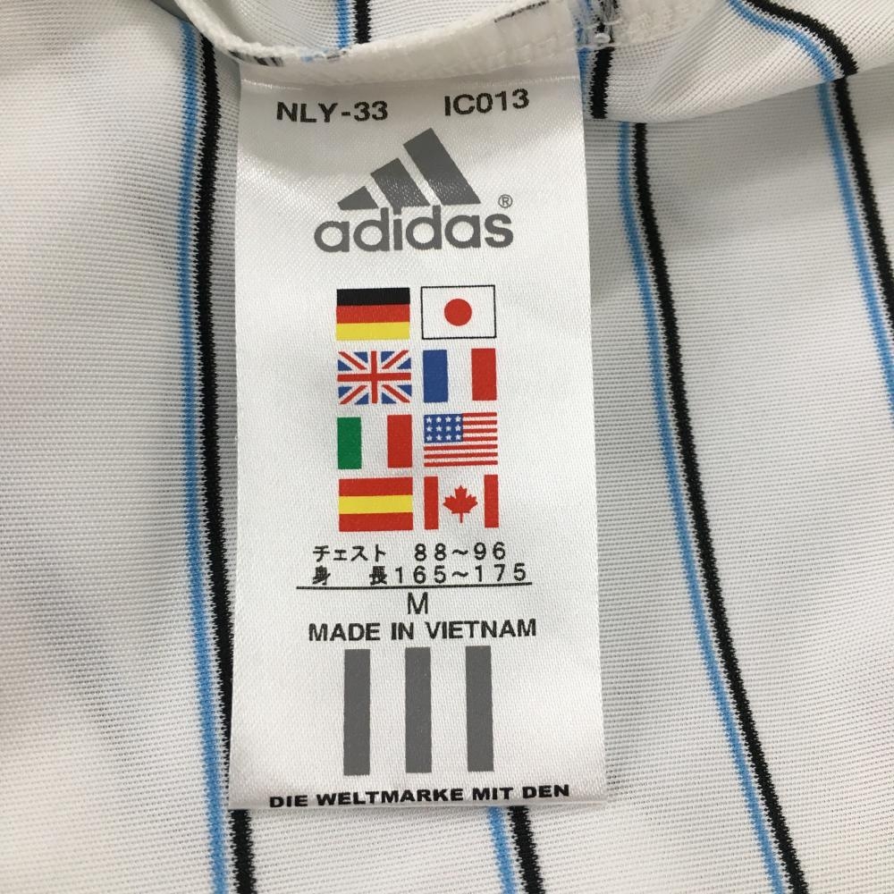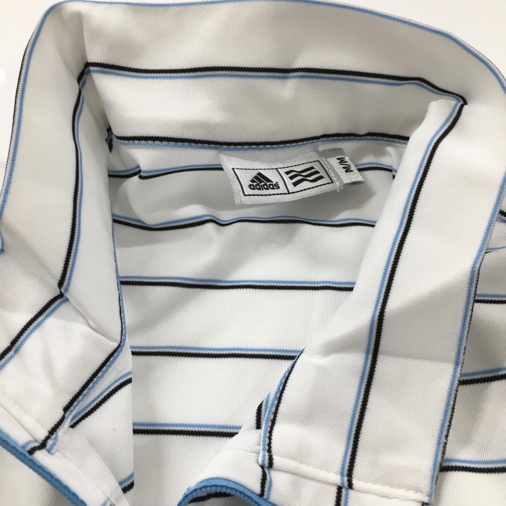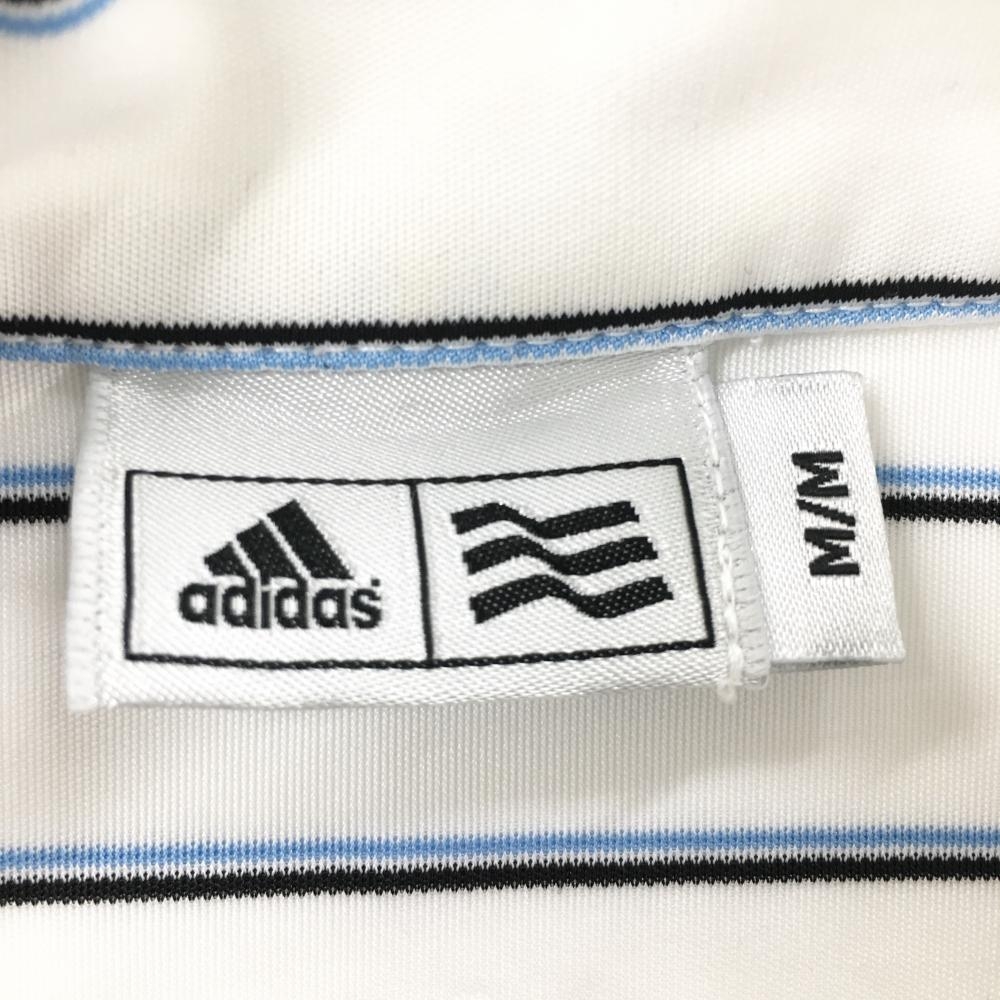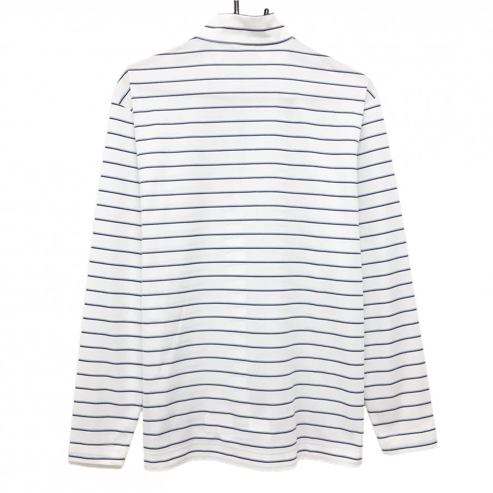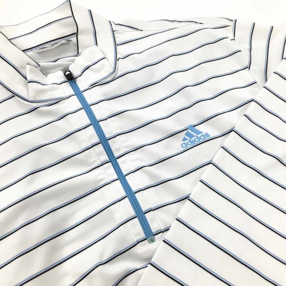 アディダス 長袖ハイネックシャツ 白×ライトブルー ボーダー ハーフジップ メンズ M/M ゴルフウェア adidas