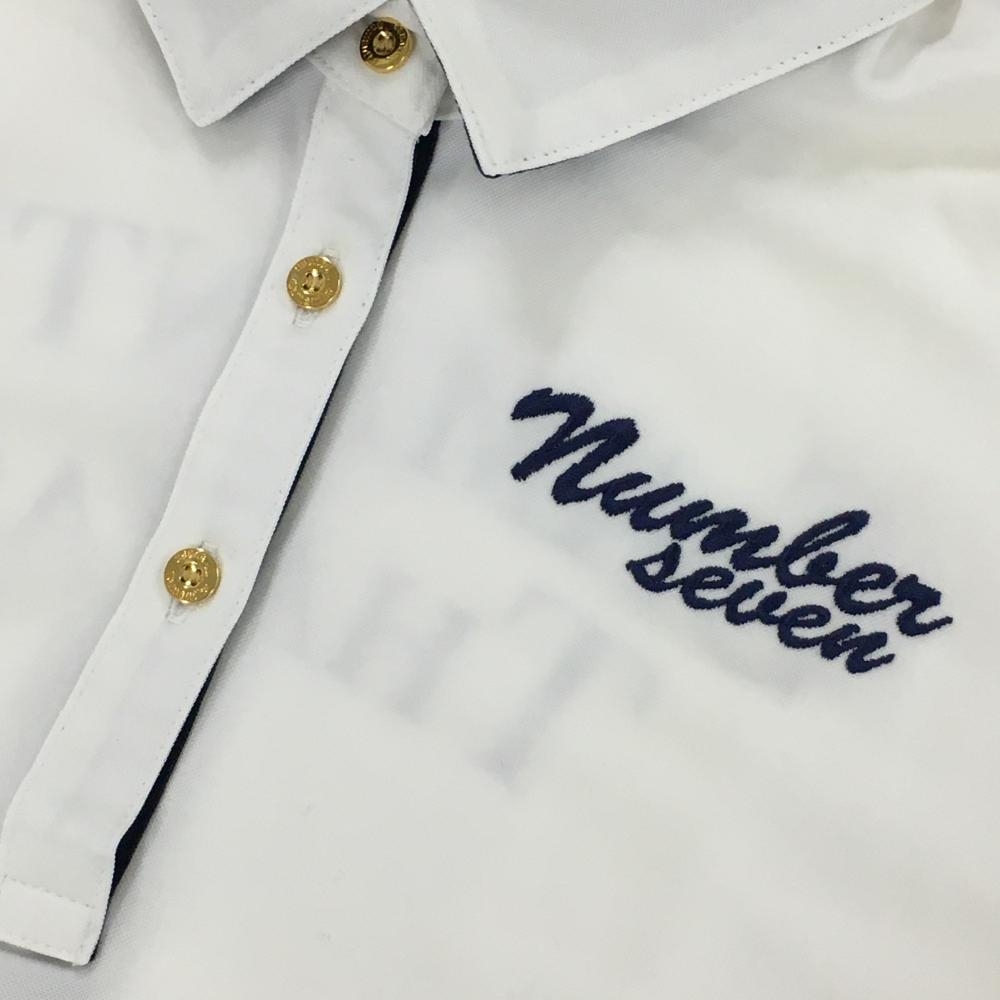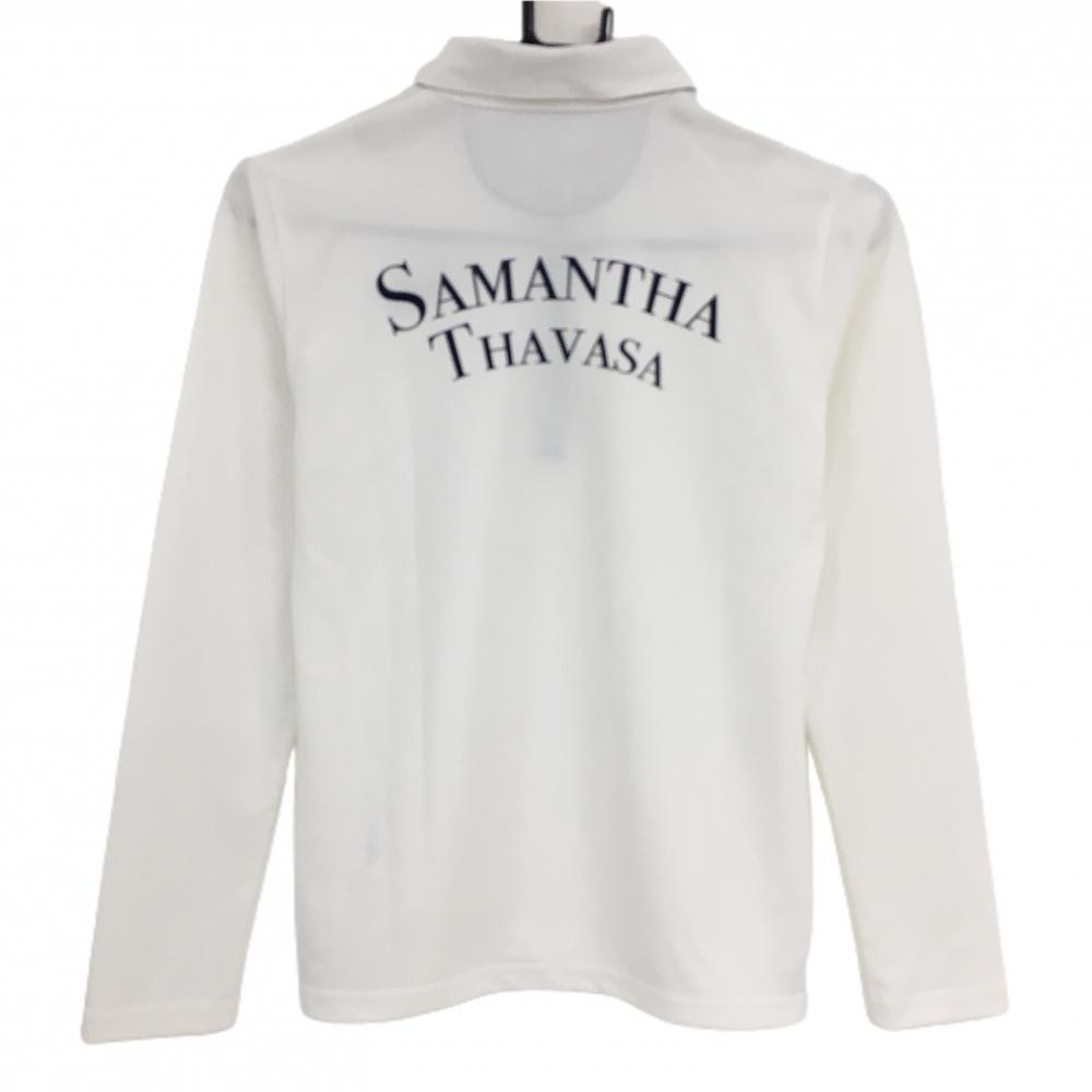 【超美品】サマンサタバサNo.7 長袖ポロシャツ 白×ネイビー 胸刺しゅう レディース 38(M) ゴルフウェア Samantha Thavasa