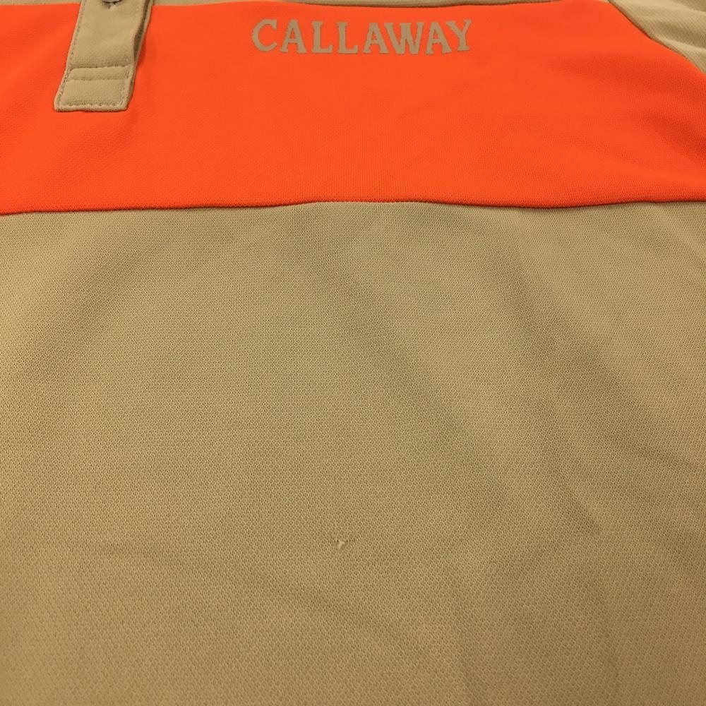 【美品】キャロウェイ 長袖ポロシャツ ベージュ×オレンジ 胸元切替 レディース LL ゴルフウェア 2023年モデル Callaway