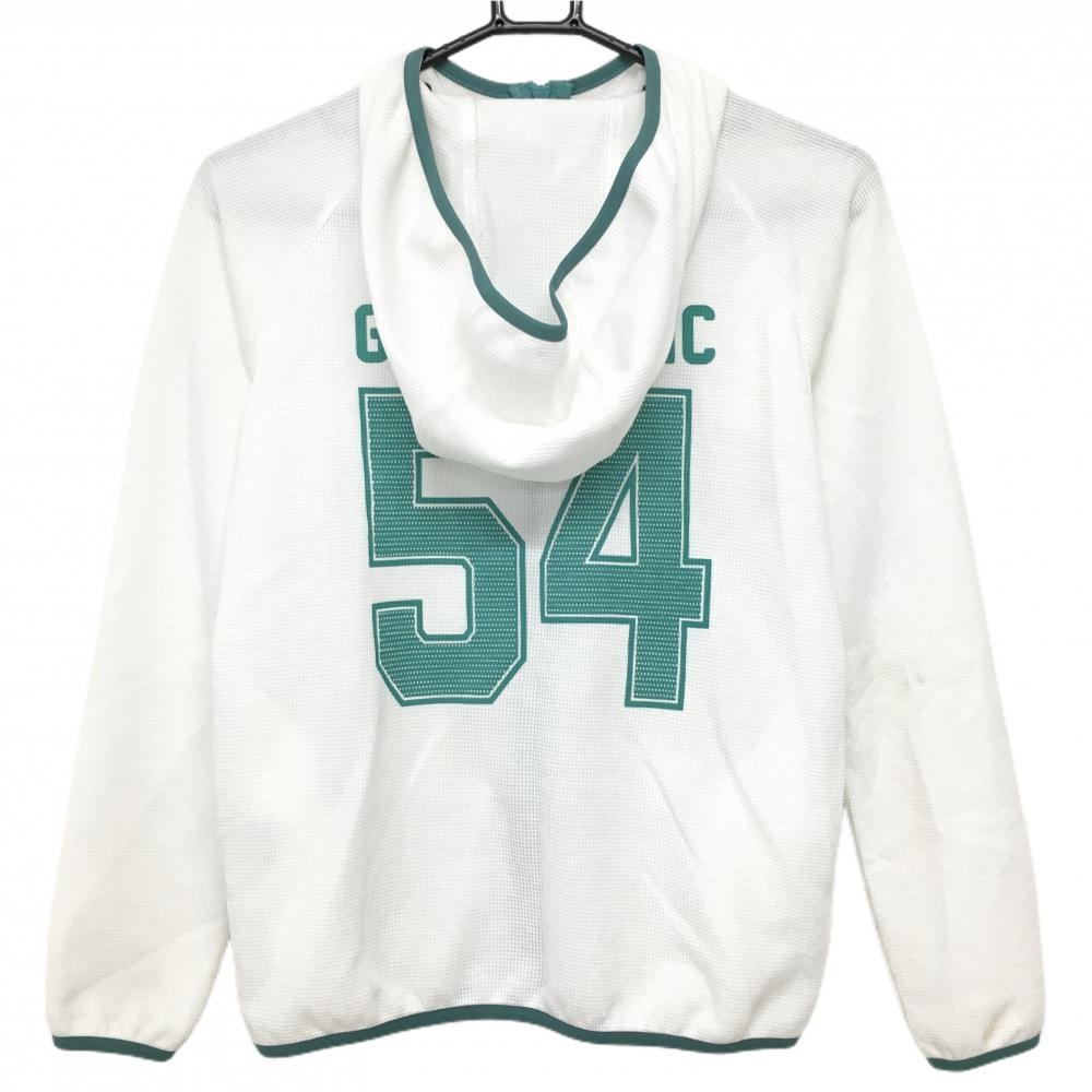 ジャックバニー ジップパーカー 白×グリーン バックプリント 織生地 ブルゾン レディース 0(S) ゴルフウェア Jack Bunny