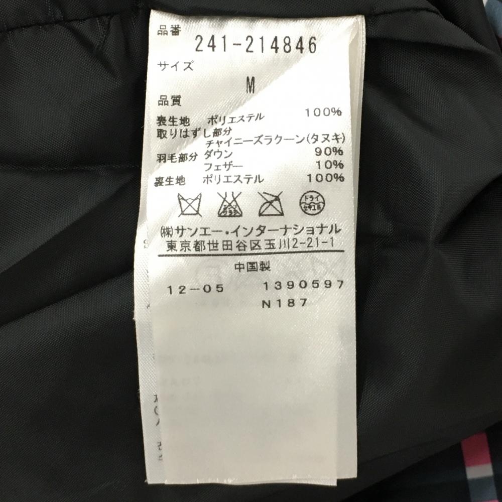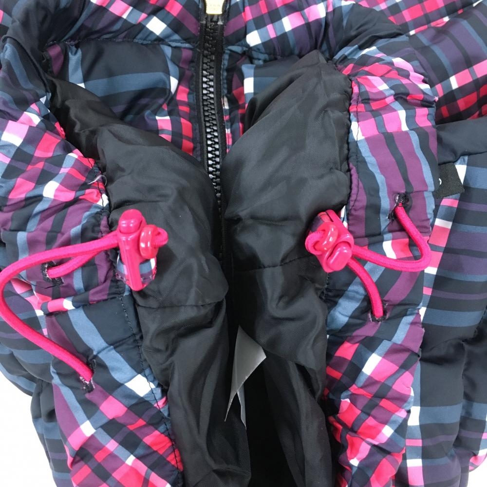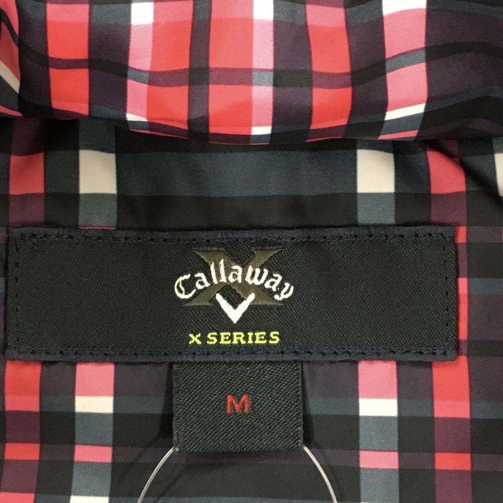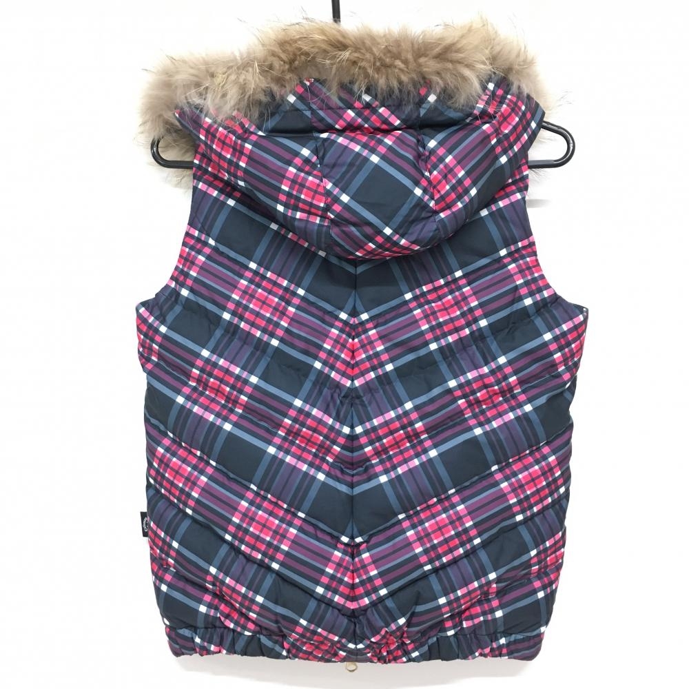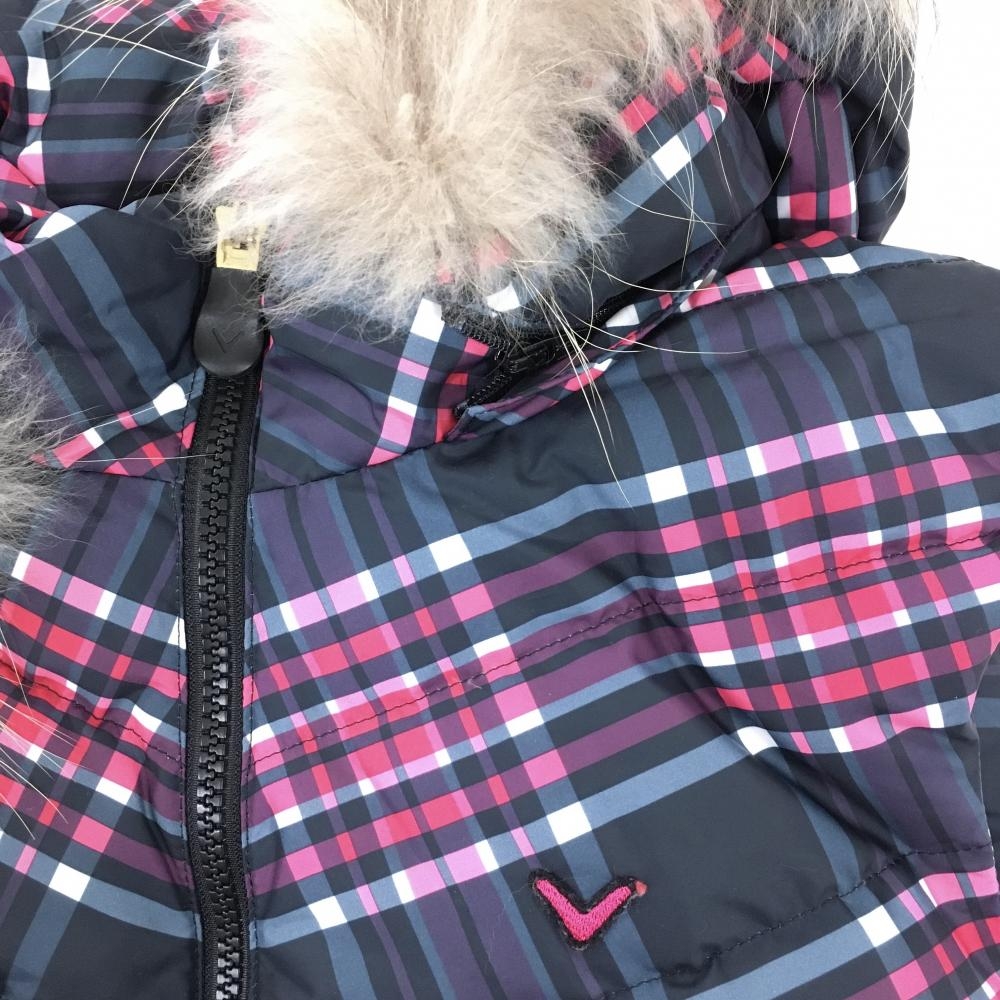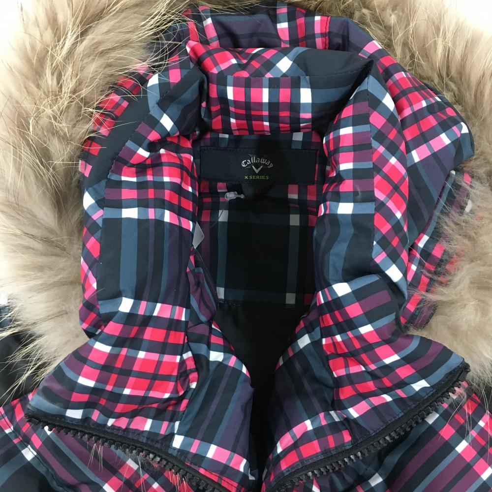【美品】キャロウェイ フード付きダウンベスト ネイビー×ピンク チェック フード着脱可 レディース M ゴルフウェア Callaway