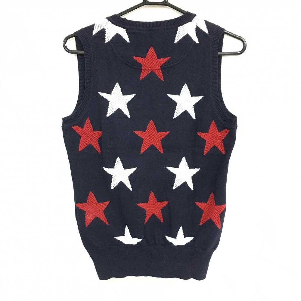 キャロウェイ ニットベスト ネイビー×白 星柄 クマ刺しゅう レディース L ゴルフウェア Callaway