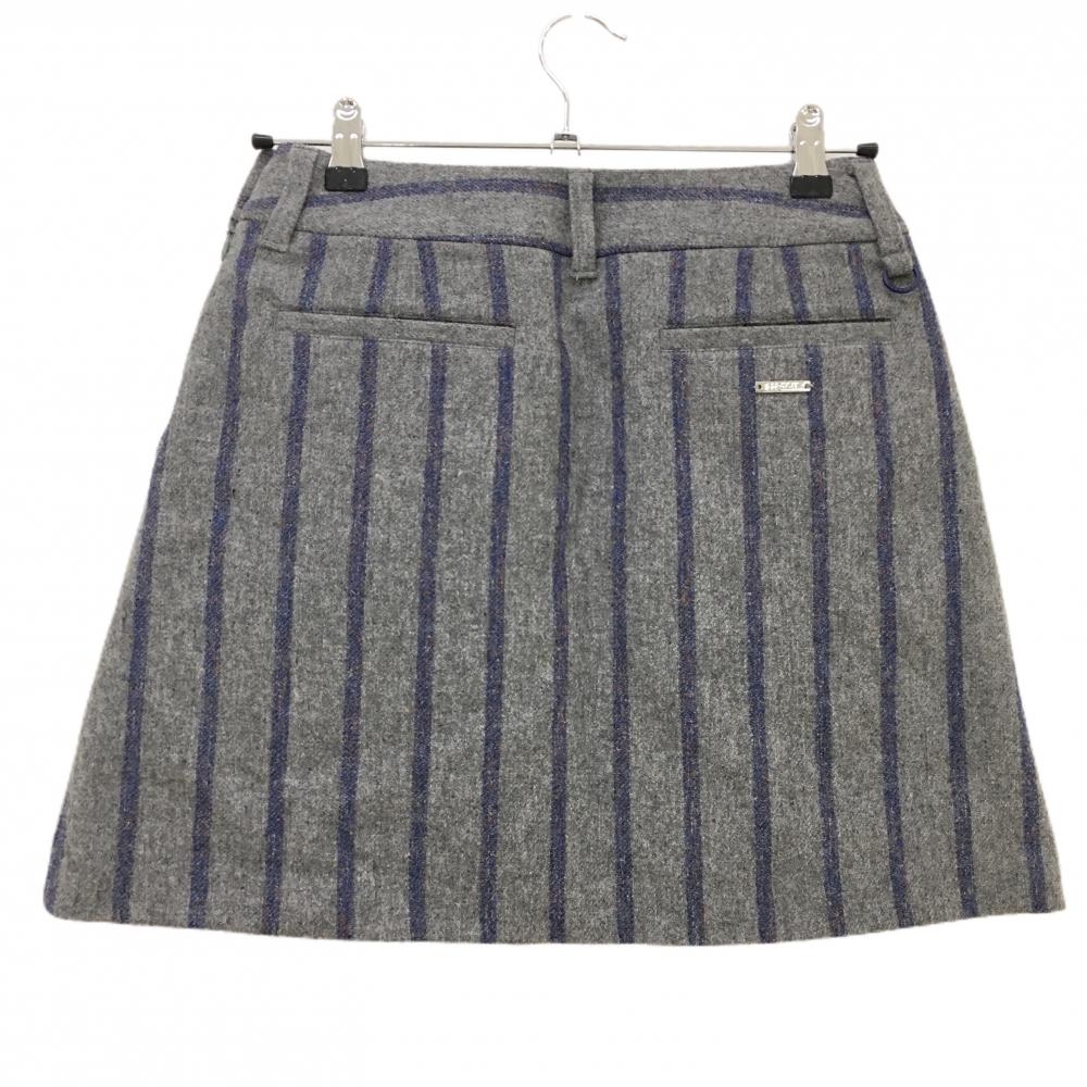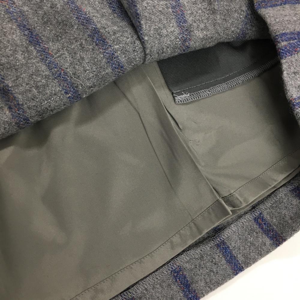 【超美品】23区ゴルフ スカート グレー×ブルー ストライプ ウール混 裏地付 レディース 61(S) ゴルフウェア 23区