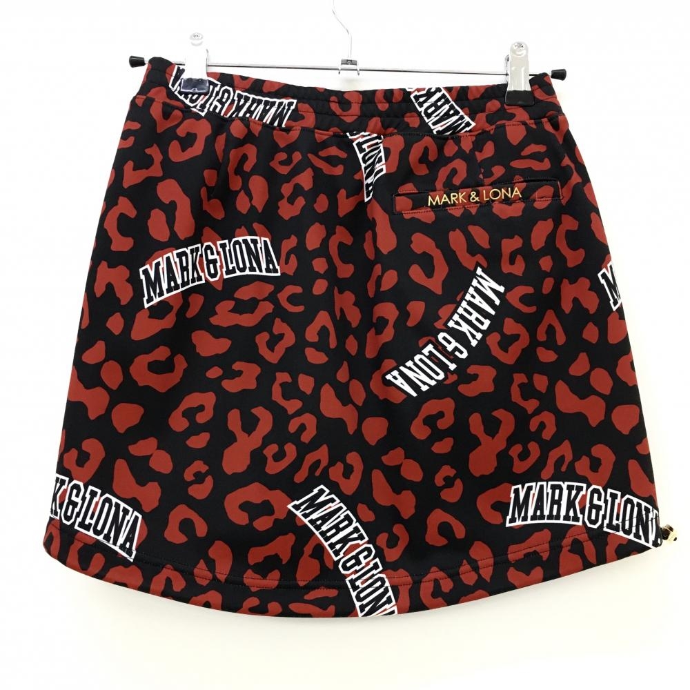 【美品】マークアンドロナ スカート 黒×レッド 総柄 裏微起毛 レディース S ゴルフウェア MARK&LONA