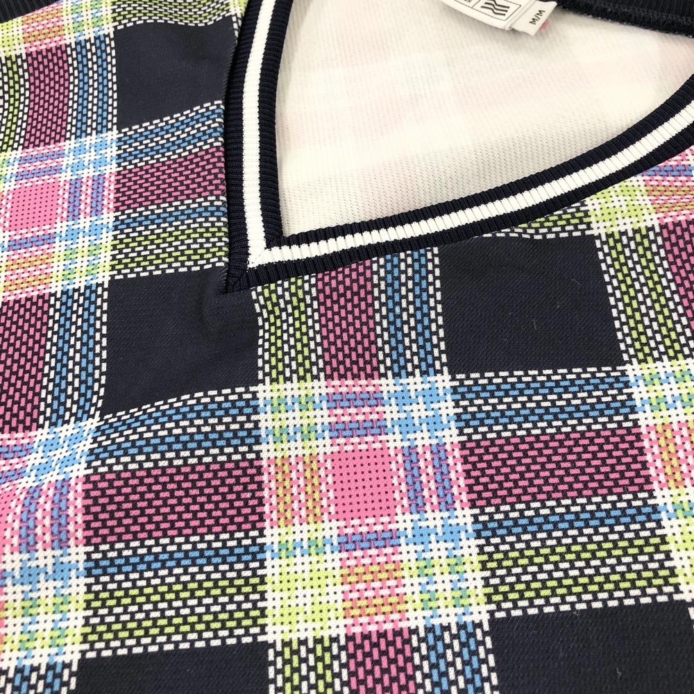 【美品】アディダス ベスト ネイビー×マルチカラー Vネック チェック レディース M/M ゴルフウェア adidas