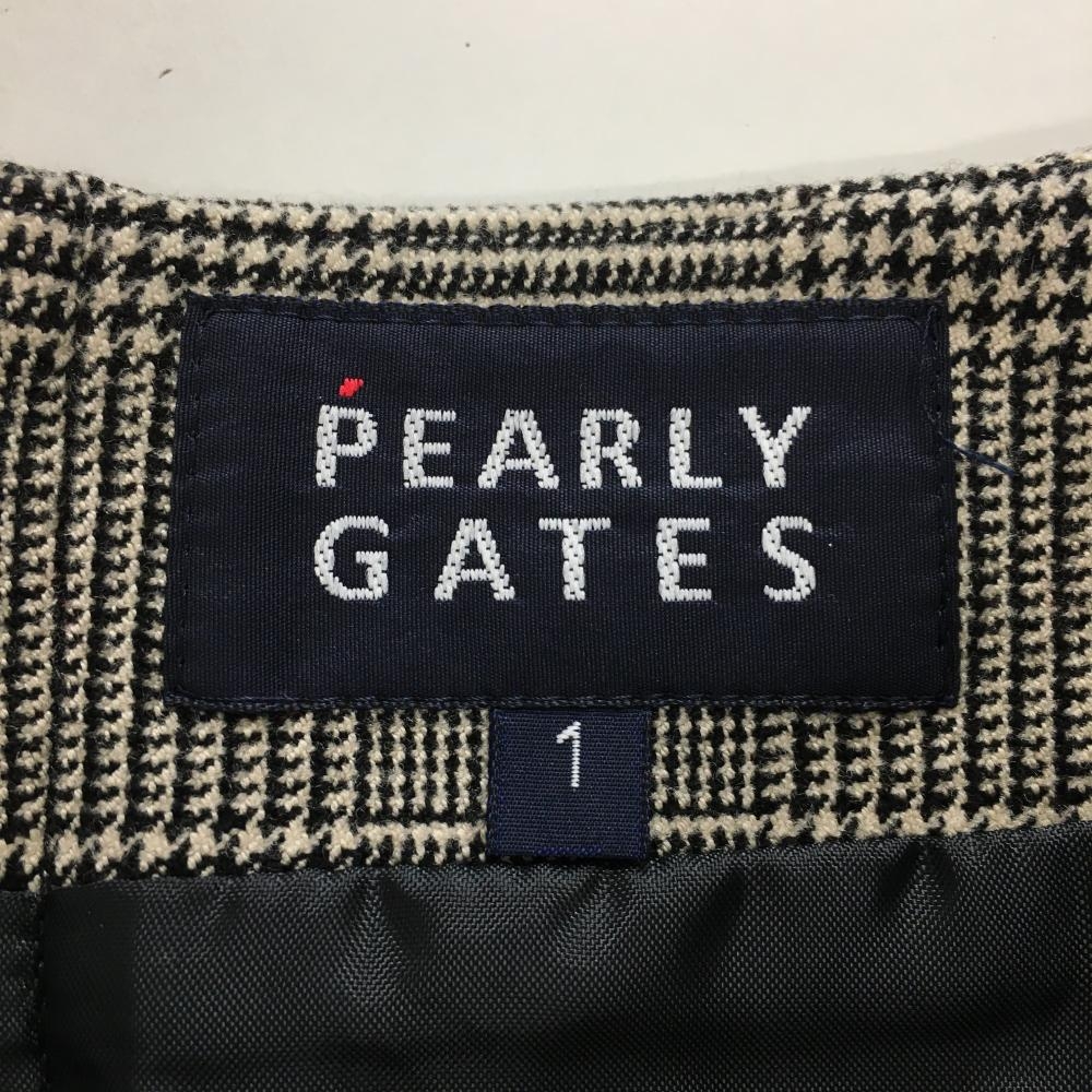 【超美品】パーリーゲイツ フレアスカート ベージュ×黒 グレンチェック 裏地付 レディース 1(M) ゴルフウェア PEARLY GATES
