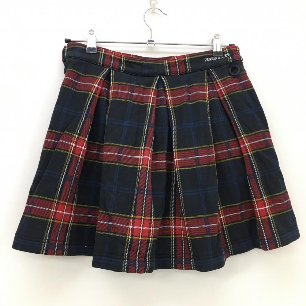 【美品】パーリーゲイツ スカート 黒×レッド チェック 裏起毛 レディース 1(M) ゴルフウェア PEARLY GATES
