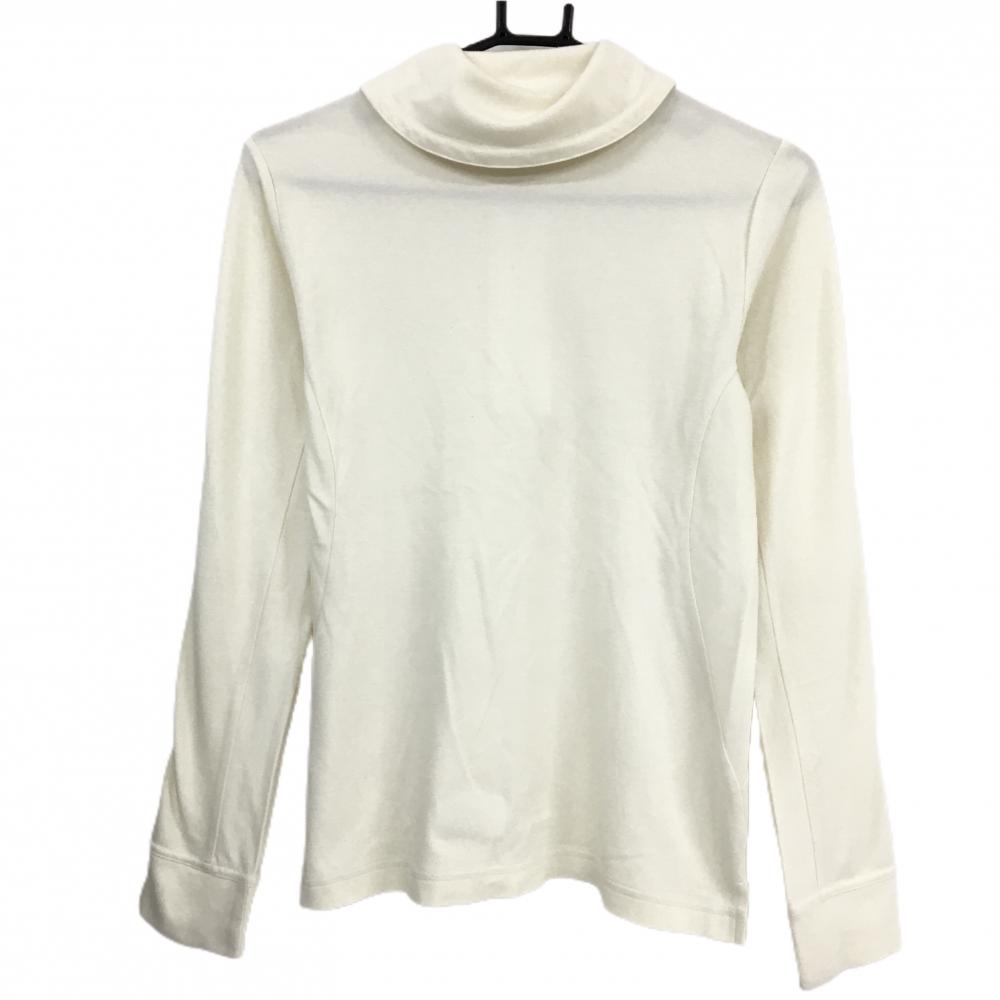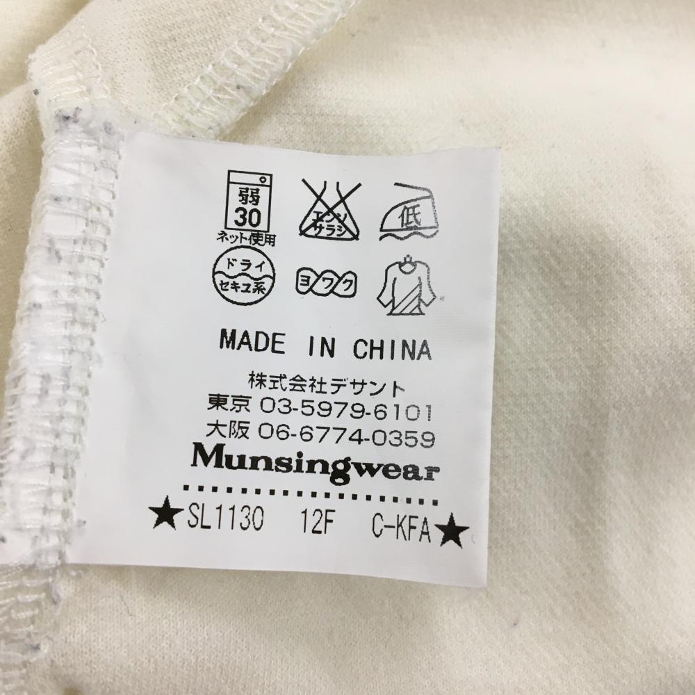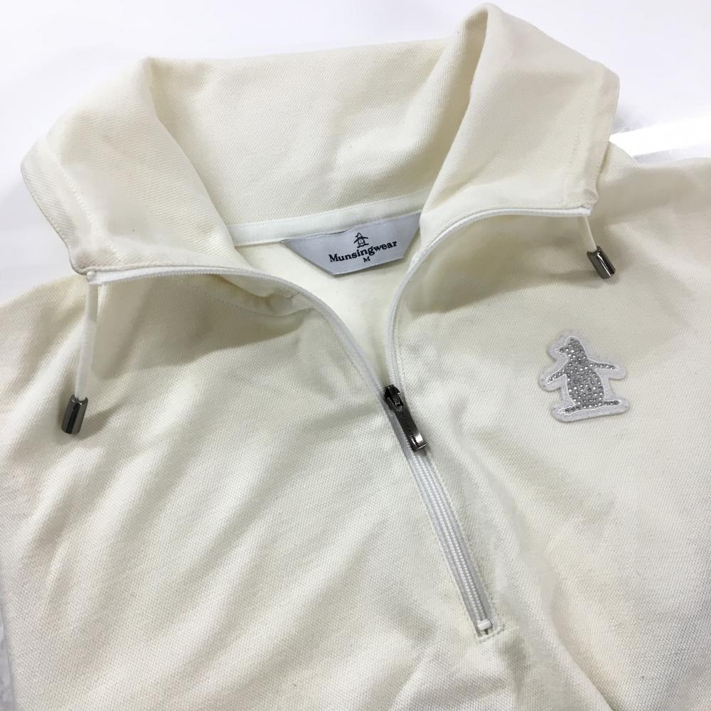 【美品】マンシングウェア 長袖ハイネックシャツ アイボリー ハーフジップ ロゴワッペン レディース M ゴルフウェア Munsingwear