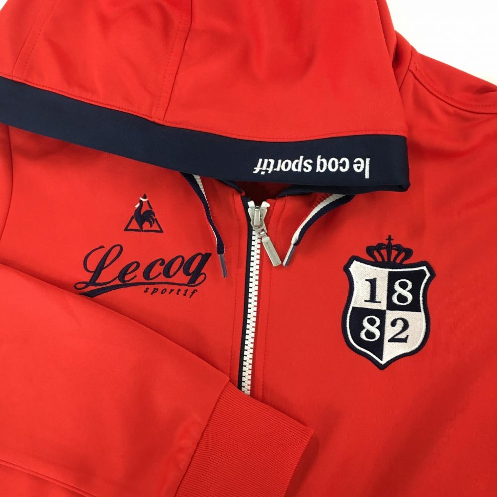 【美品】ルコック ジップパーカー レッド×ネイビー ロゴ刺しゅう レディース L ゴルフウェア le coq sportif