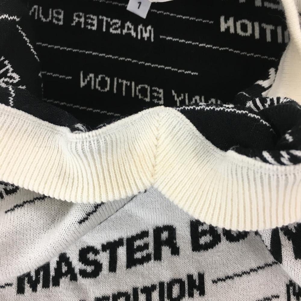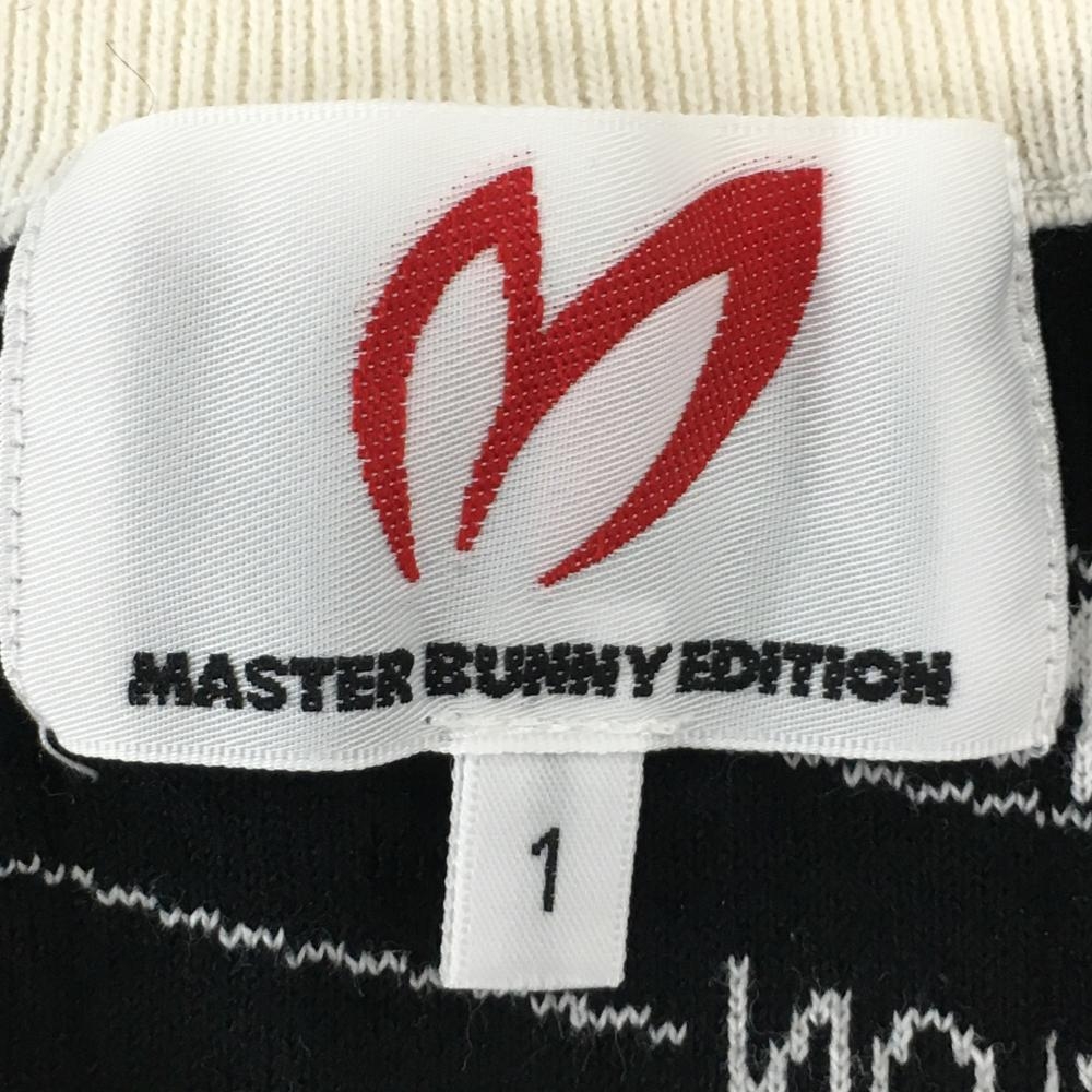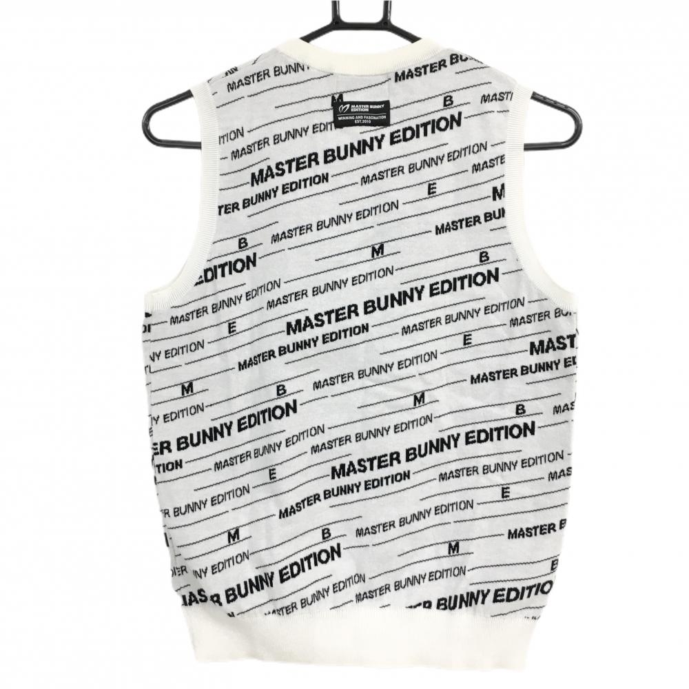 【美品】マスターバニー ニットベスト 白×黒 ロゴ総柄 Vネック コットン混 レディース 1(M) ゴルフウェア MASTER BUNNY EDITION