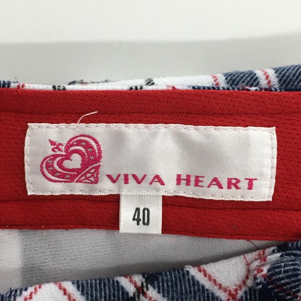 ビバハート パンツ 白×ネイビー チェック 表裏微起毛 レディース 40(M) ゴルフウェア VIVA HEART