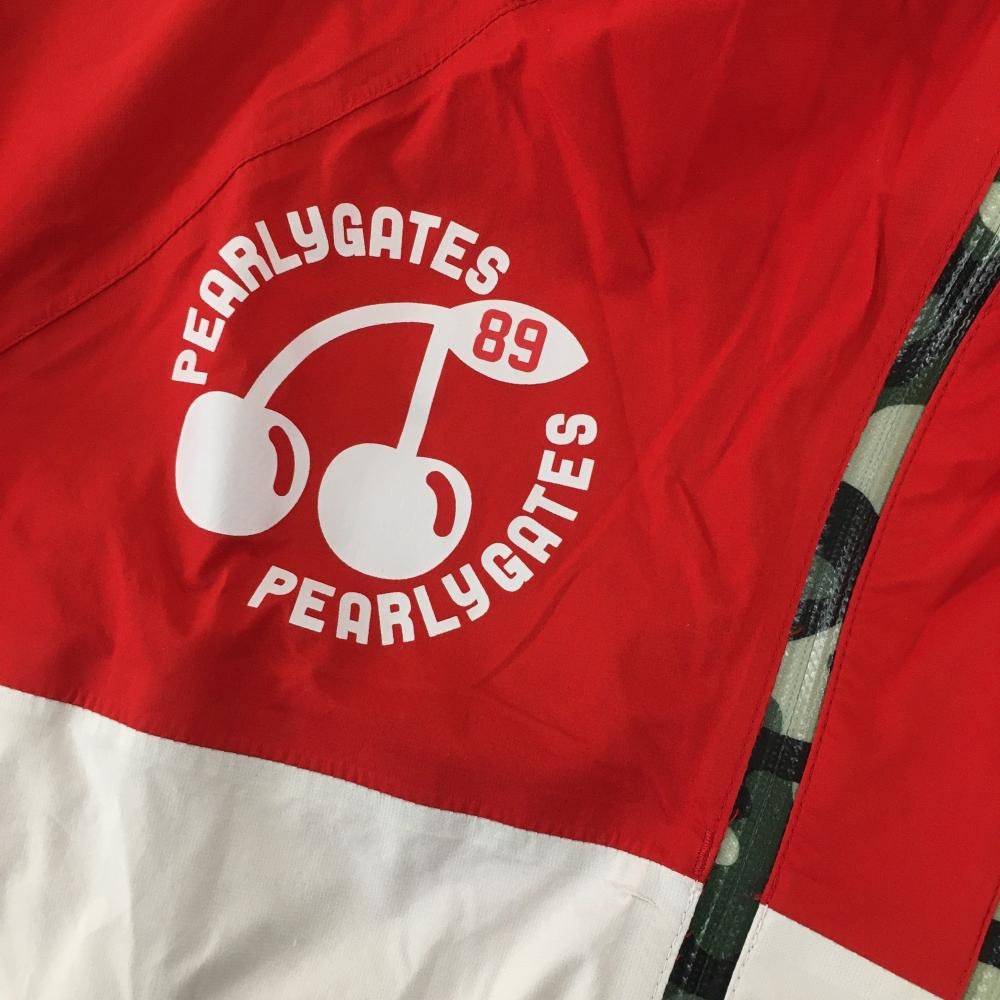 【美品】パーリーゲイツ ナイロンジップパーカー レッド×ライトグレー 一部カモフラ柄 迷彩 レディース 0(S) ゴルフウェア PEARLY GATES