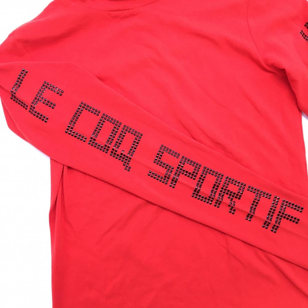 ルコック 長袖タートルネックシャツ レッド×黒 袖ロゴスタッズ レディース M ゴルフウェア le coq sportif