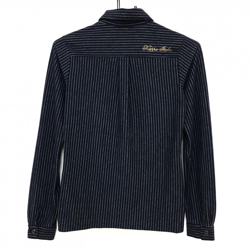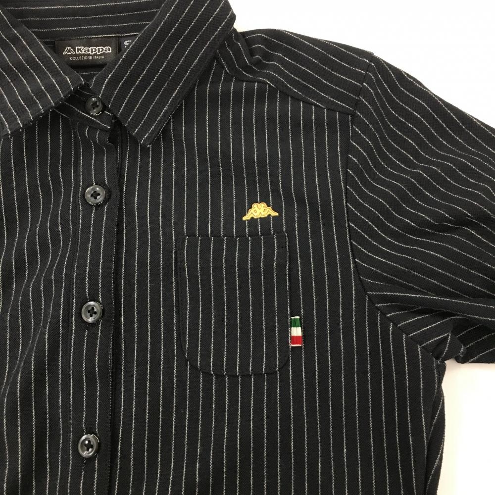【超美品】カッパ 長袖ポロシャツ 黒×白 ストライプ 胸ポケット レディース S ゴルフウェア Kappa