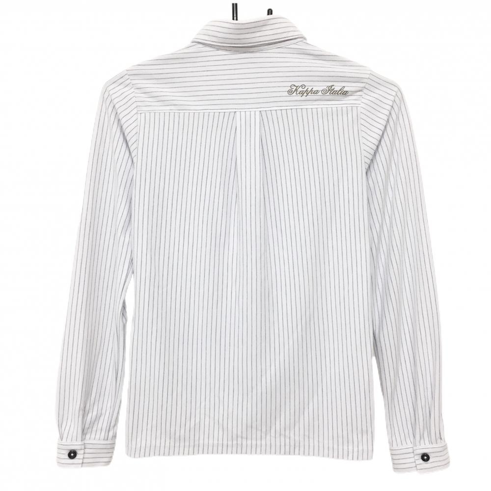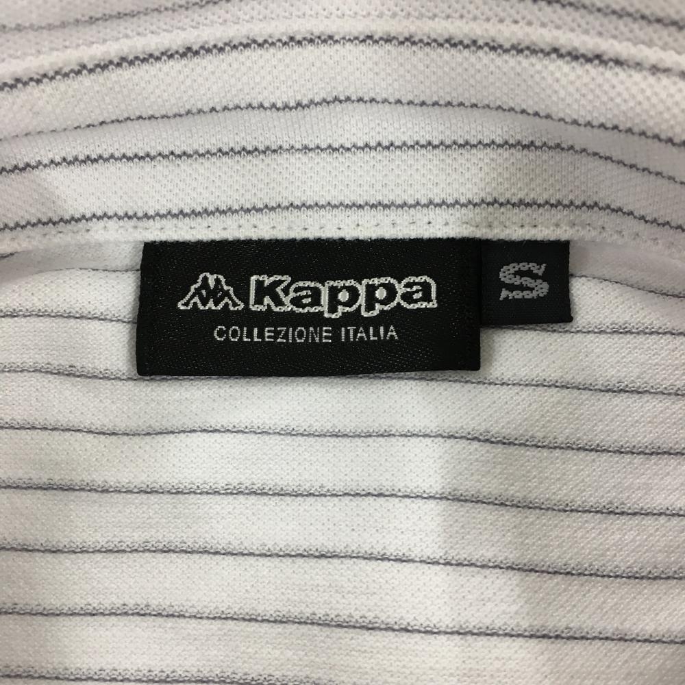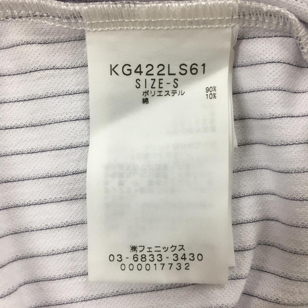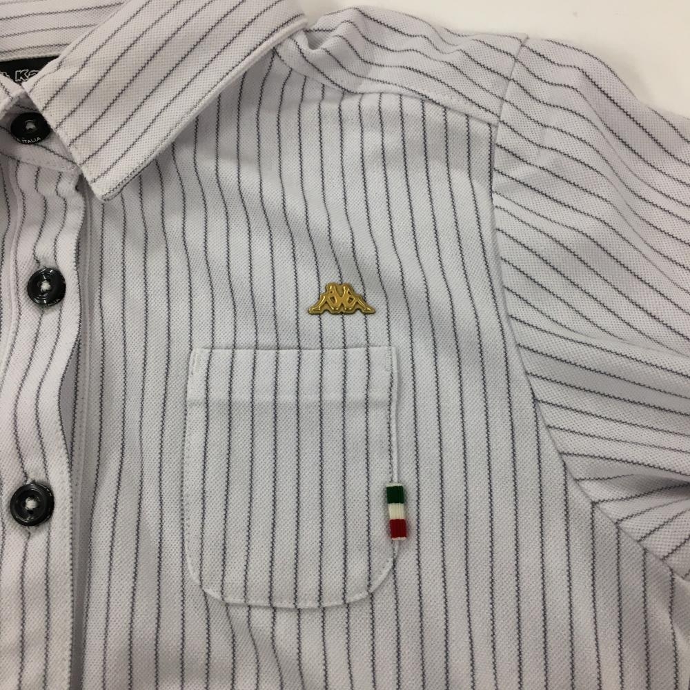 【超美品】カッパ 長袖ポロシャツ 白×グレー ストライプ 胸ポケット レディース S ゴルフウェア Kappa