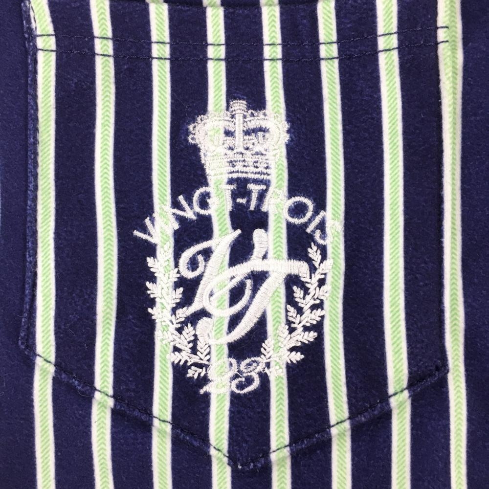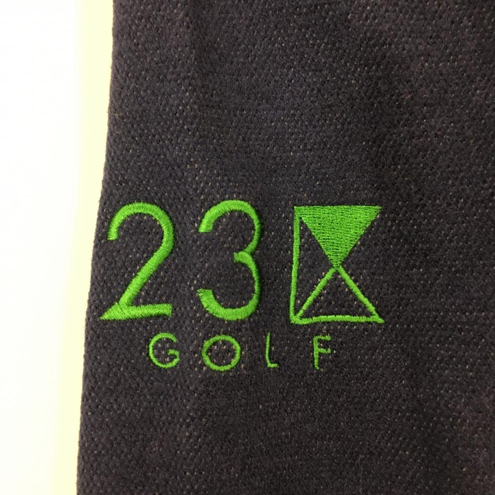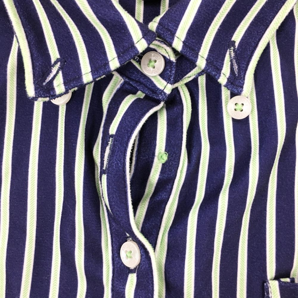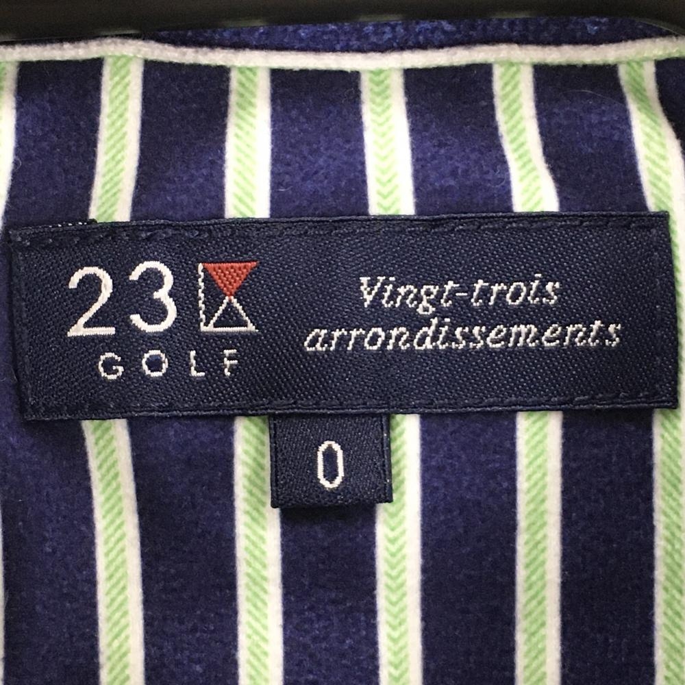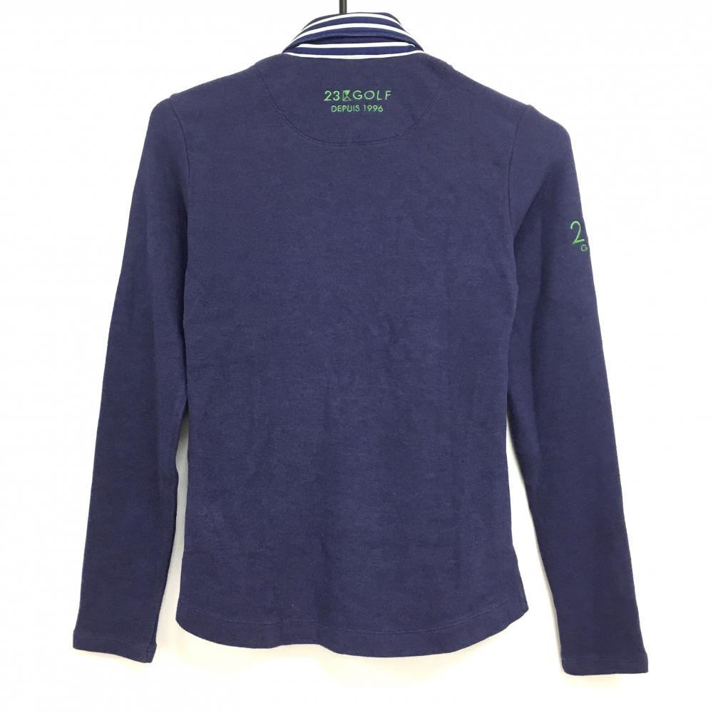 【美品】23区ゴルフ 長袖ポロシャツ ネイビー×ライトグリーン ストライプ 袖・背面微起毛 レディース 0(S) ゴルフウェア 23区