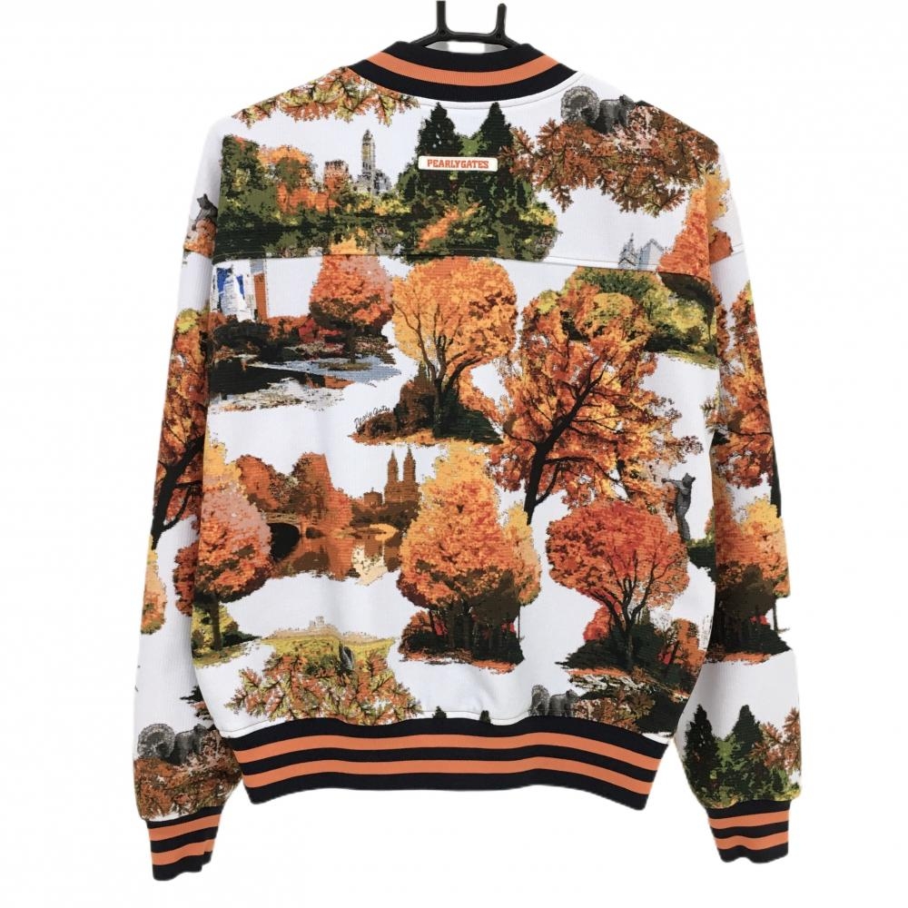 【超美品】パーリーゲイツ ジャケットブルゾン 白×オレンジ 総柄 木 レディース 1(M) ゴルフウェア PEARLY GATES