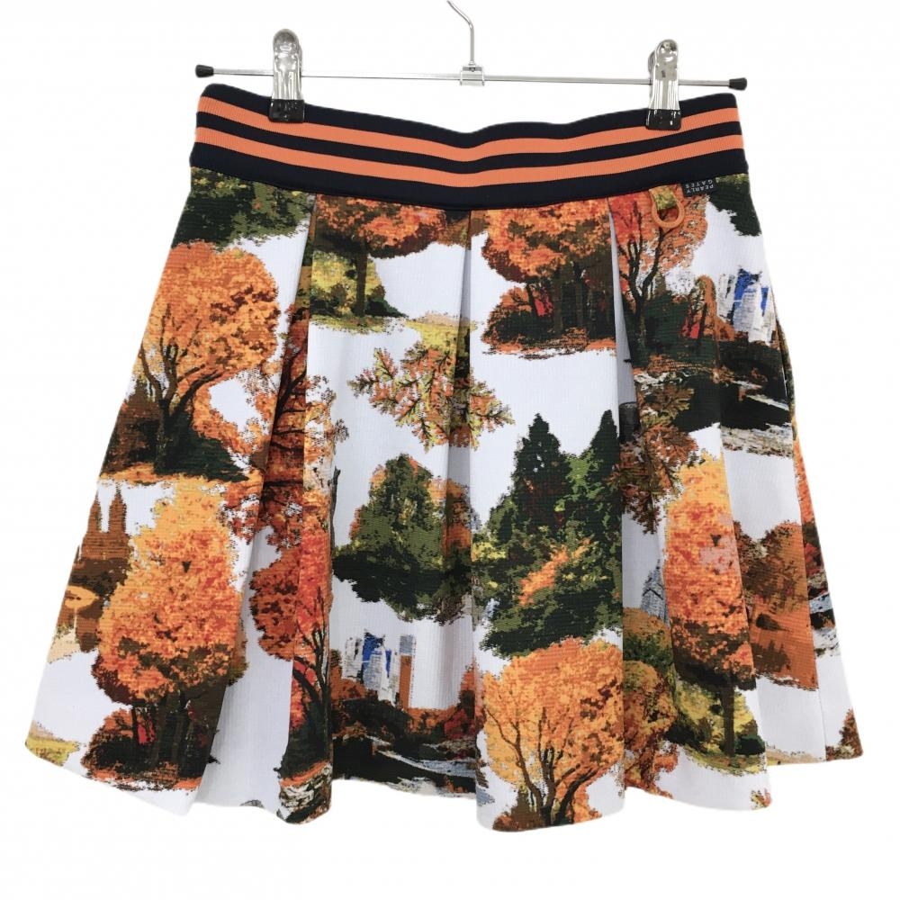 【超美品】パーリーゲイツ スカート 白×オレンジ 総柄 木 裏地付 レディース 0(S) ゴルフウェア PEARLY GATES