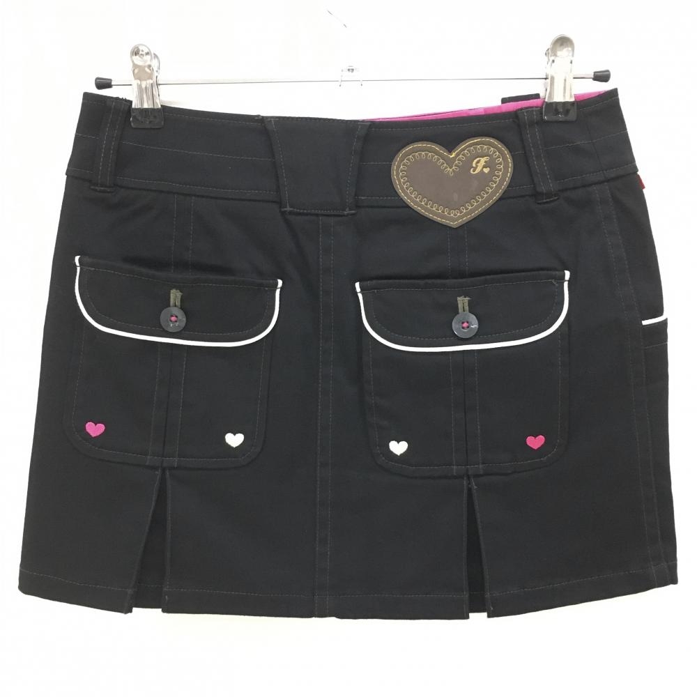 フィラゴルフ スカート 黒×白 ボックスプリーツ ハート レディース M ゴルフウェア FILA GOLF