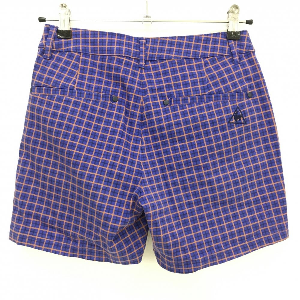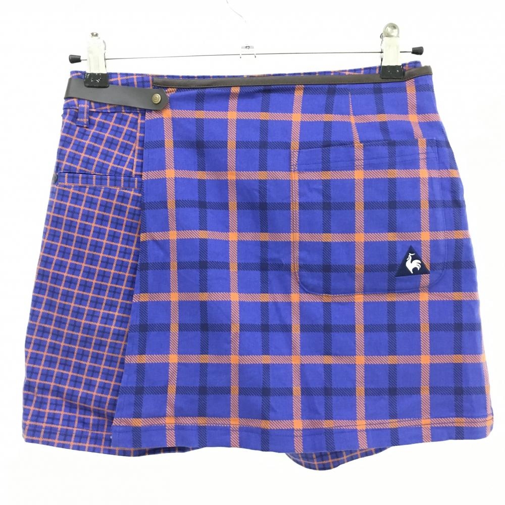【美品】ルコック 2WAYスカート パープル系×オレンジ 格子チェック レディース 7 ゴルフウェア le coq sportif