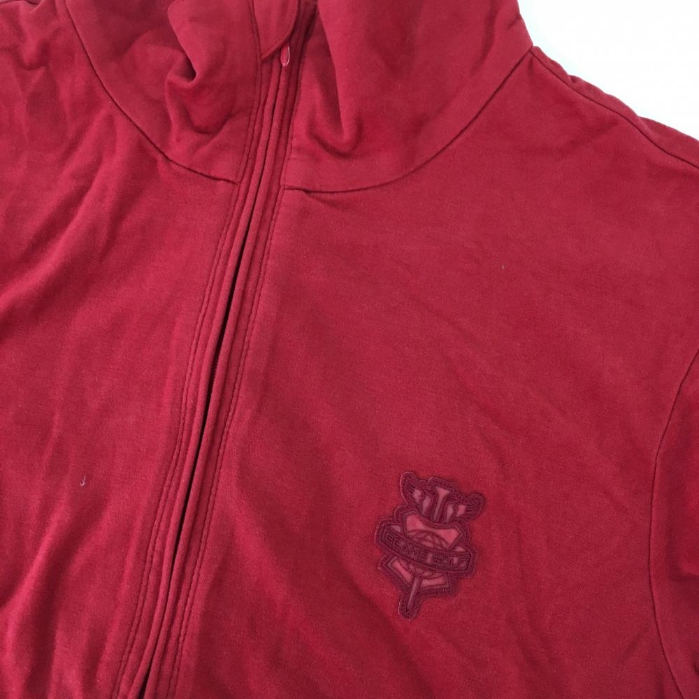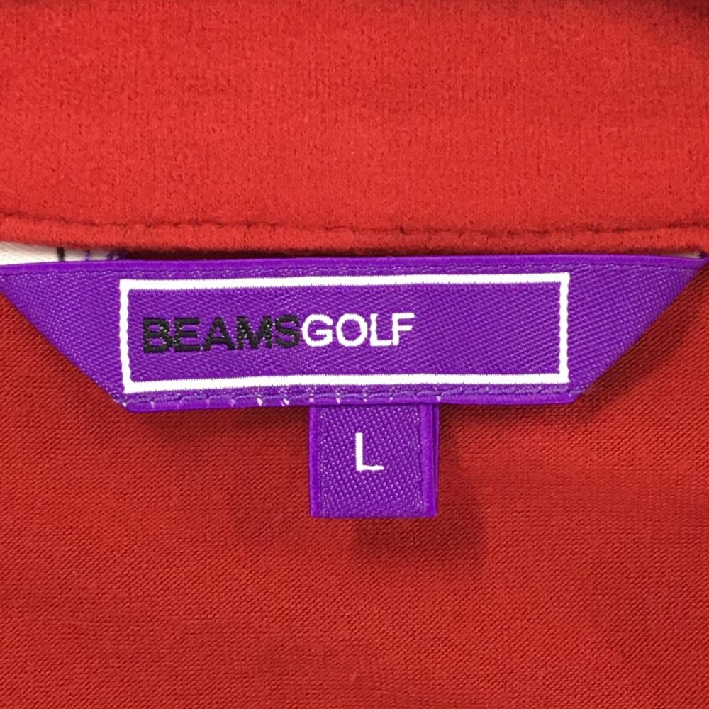 【美品】ビームスゴルフ 長袖ハイネックシャツ レッド 微起毛 ハーフジップ ロゴワッペン メンズ L ゴルフウェア BEAMS GOLF