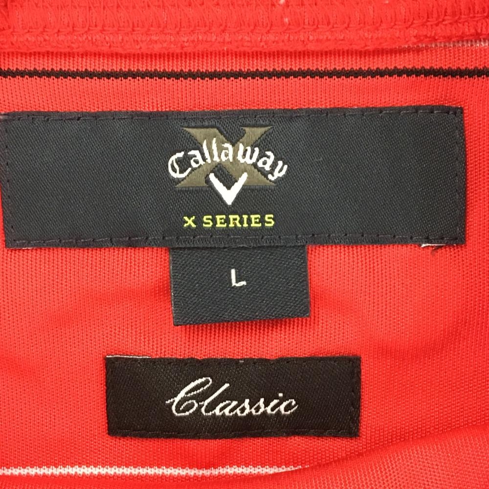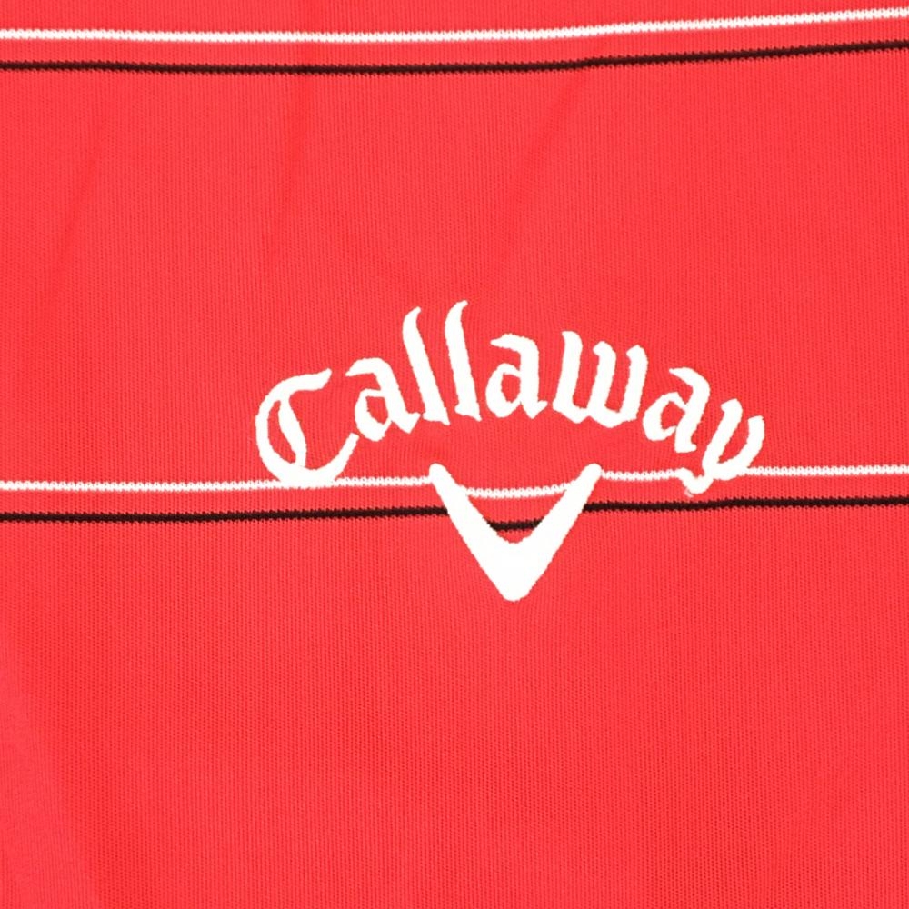 【美品】キャロウェイ 長袖ハイネックシャツ レッド×白 ボーダー ロゴ刺しゅう メンズ L ゴルフウェア Callaway