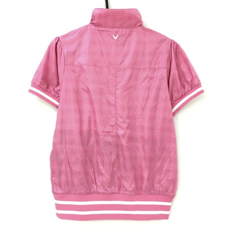 キャロウェイ 半袖ブルゾン ピンク×白 ハーフジップ 裏地メッシュ レディース L ゴルフウェア Callaway