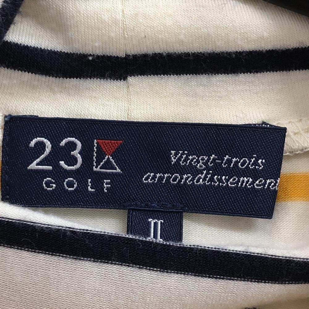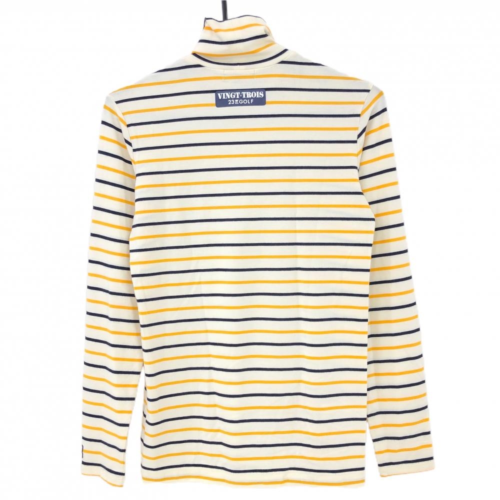 23区ゴルフ 長袖ハイネックシャツ アイボリー×オレンジ系 ボーダー 表微起毛 アクリル混 レディース II (L ) ゴルフウェア 23区