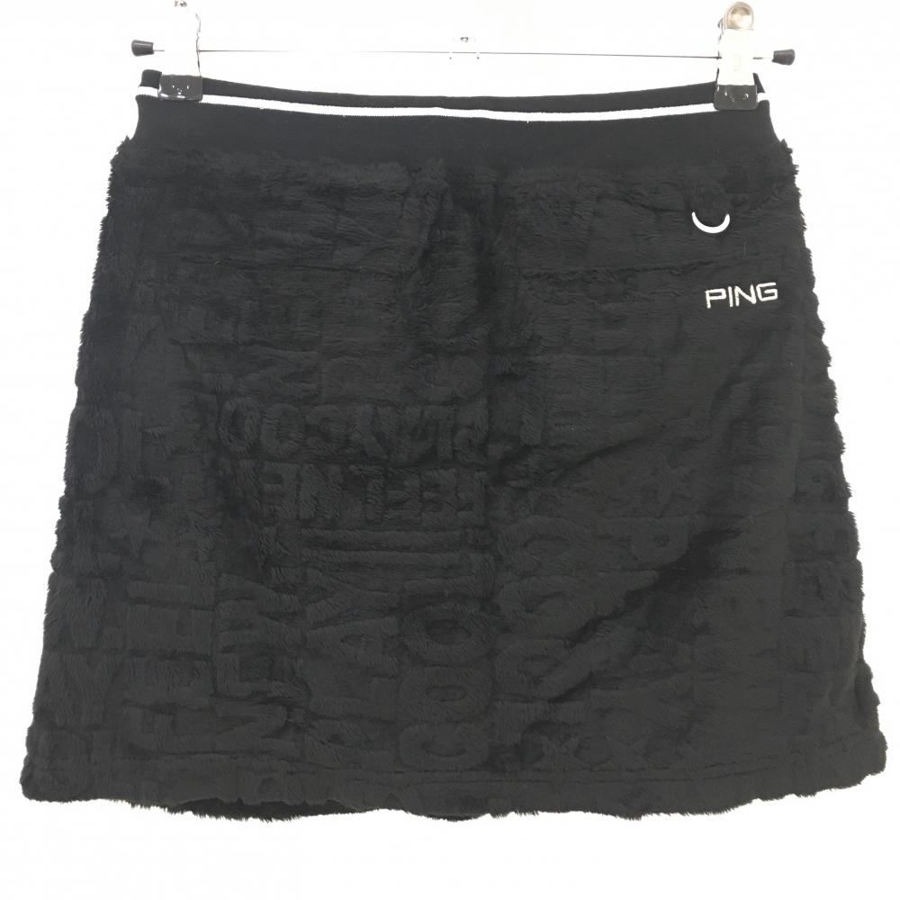 【美品】ピン スカート 黒 地模様 ファー 裏地付き レディース SS ゴルフウェア PING