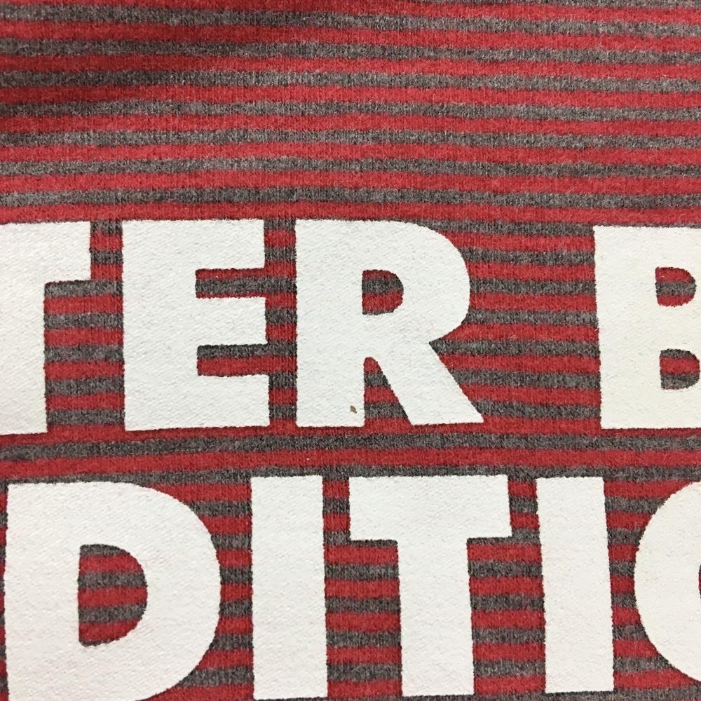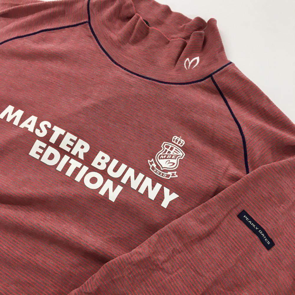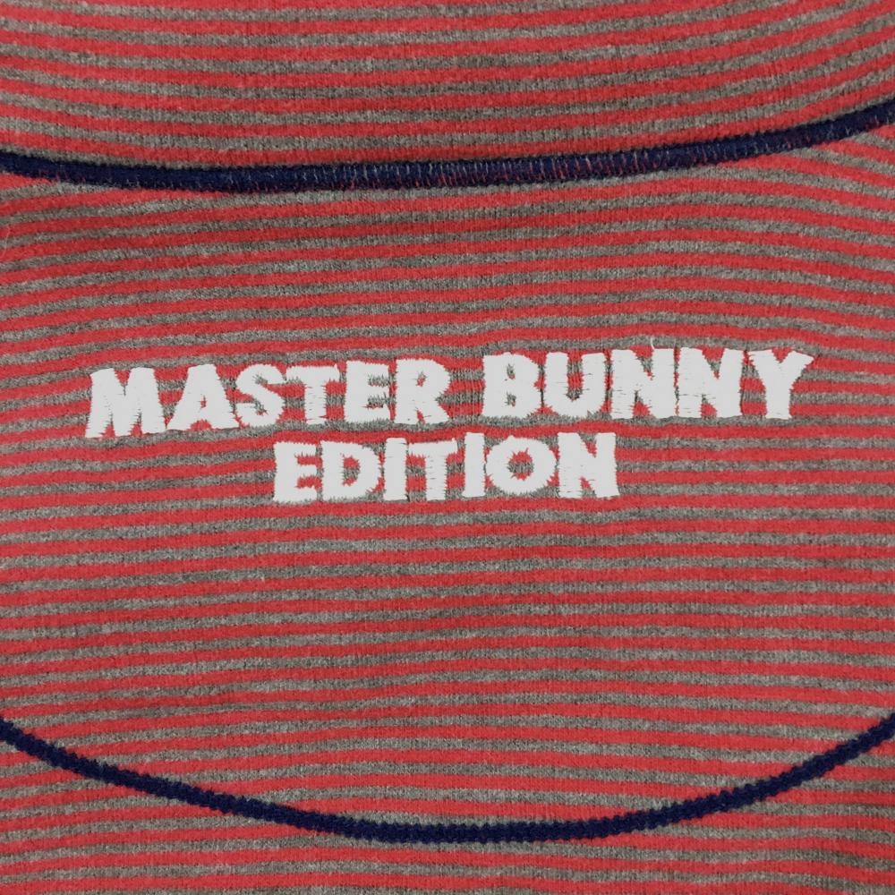 【美品】マスターバニー 長袖ハイネックシャツ レッド×グレー 細ボーダー メンズ 6(XL) ゴルフウェア MASTER BUNNY EDITION
