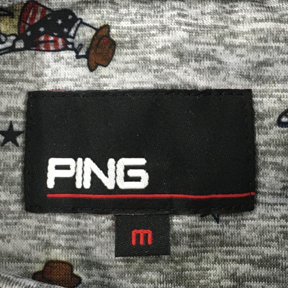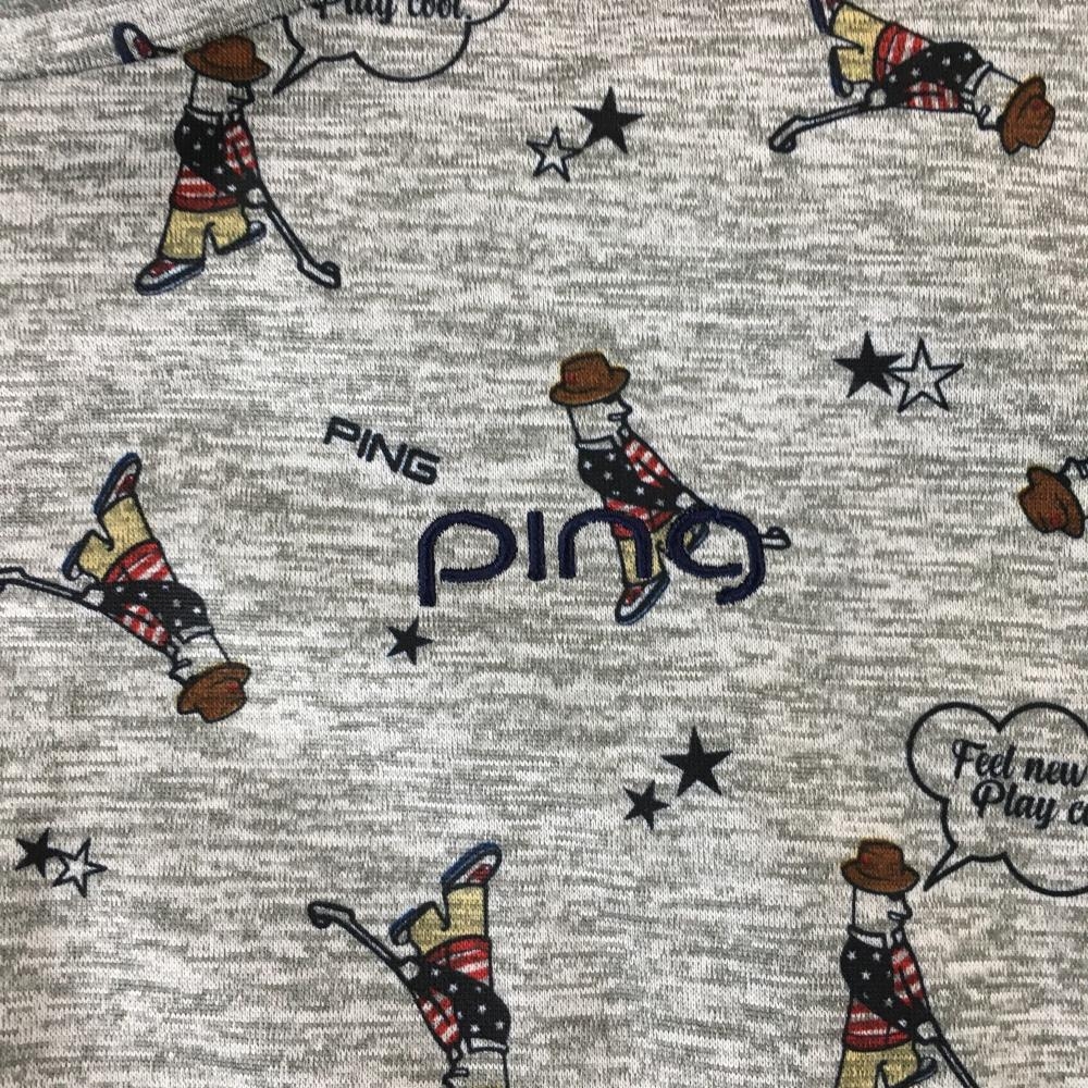 【超美品】ピン 長袖ハイネックシャツ 杢グレー×ブラウン ゴルファー総柄 レディース M ゴルフウェア PING