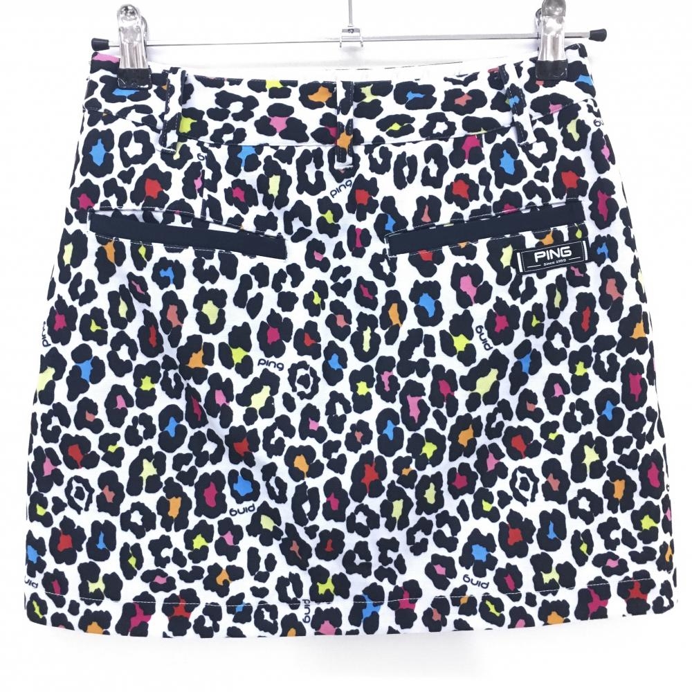 【美品】ピン スカート 白×黒×マルチカラー レオパード レディース SS ゴルフウェア PING