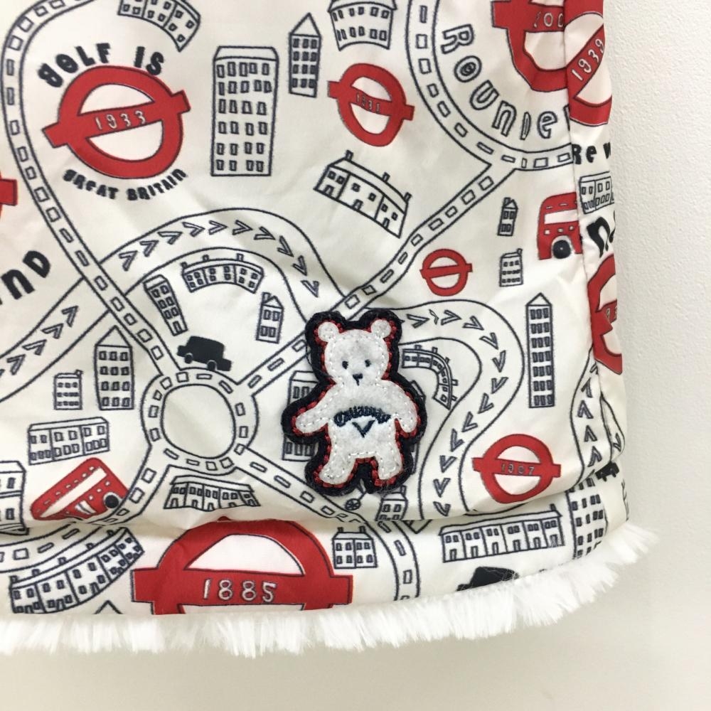 【超美品】キャロウェイ 中綿リバーシブルスカート 白×レッド 総柄 ボア ウエストゴム&調節紐 レディース S ゴルフウェア Callaway