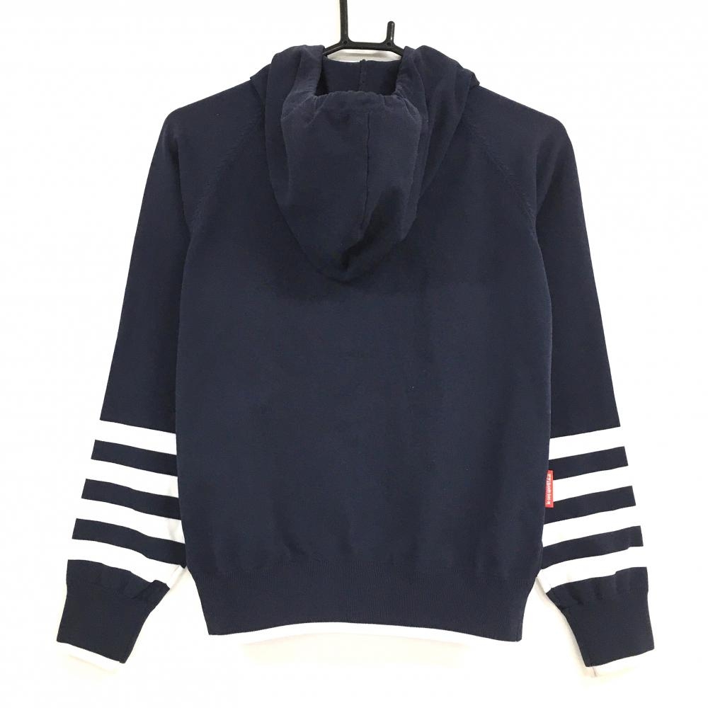 ルコックゴルフ 切替ジップパーカー ネイビー×白 袖ボーダー 前身頃裏地メッシュ レディース S ゴルフウェア le coq sportif