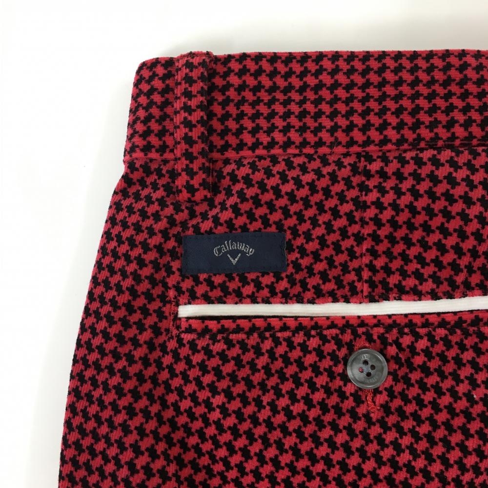 【超美品】キャロウェイ パンツ レッド×黒 総柄 表起毛 ストレッチ メンズ L ゴルフウェア Callaway
