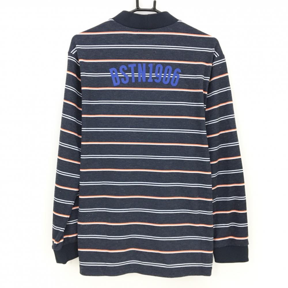 ニューバランスゴルフ 長袖ハイネックシャツ ネイビー×白 ボーダー フロントロゴ メンズ 6(XL) ゴルフウェア New Balance