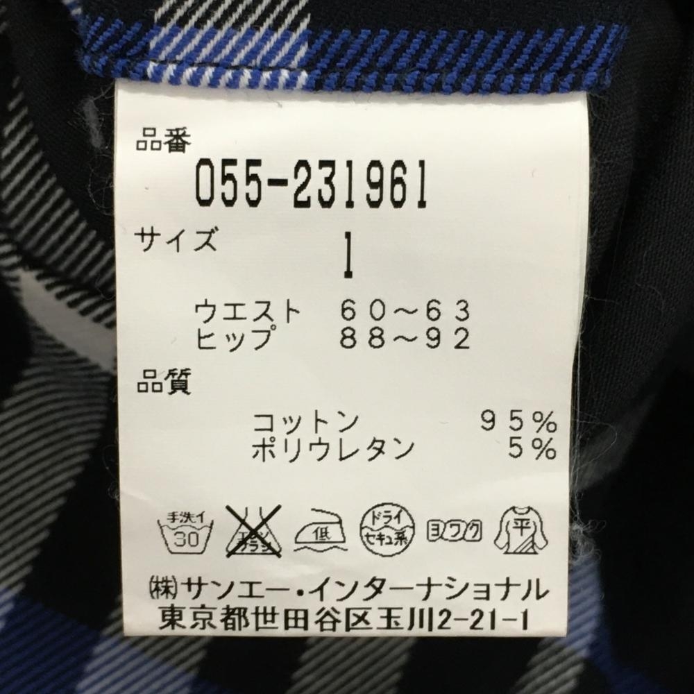 パーリーゲイツ パンツ ネイビー×白 チェック ストレッチ レディース 1(M) ゴルフウェア PEARLY GATES