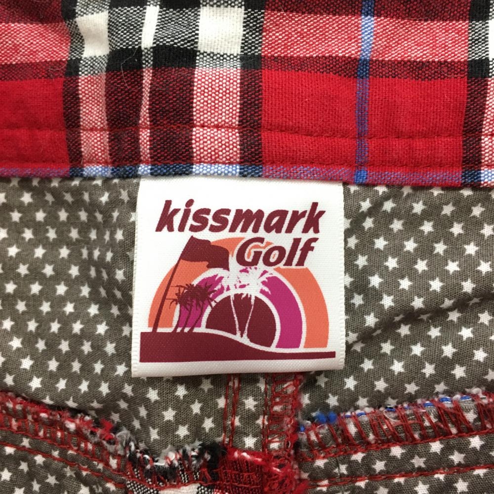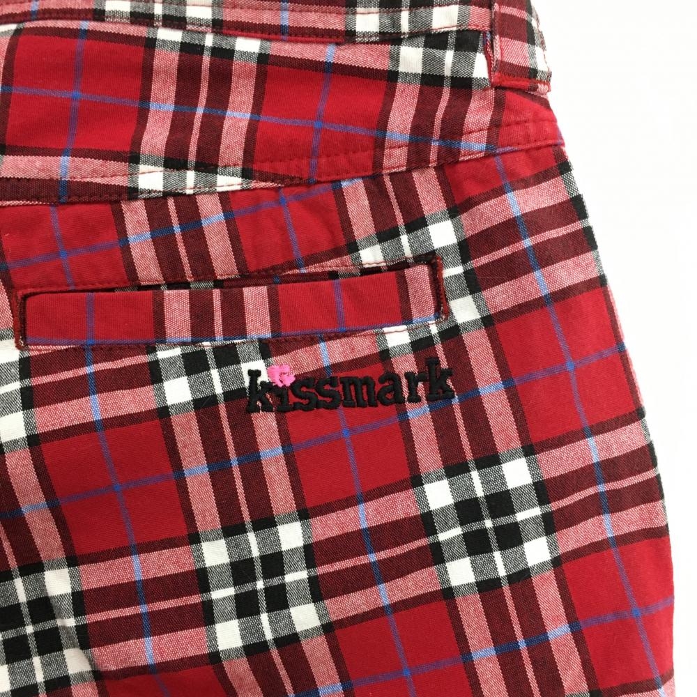 【美品】キスマークゴルフ パンツ レッド×黒 チェック レディース 9 ゴルフウェア kissmark