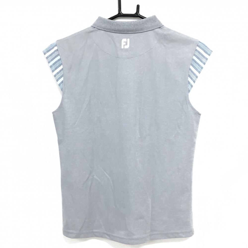 【超美品】フットジョイ ノースリーブポロシャツ ライトグレー×白 一部ボーダー レディース M ゴルフウェア FootJoy