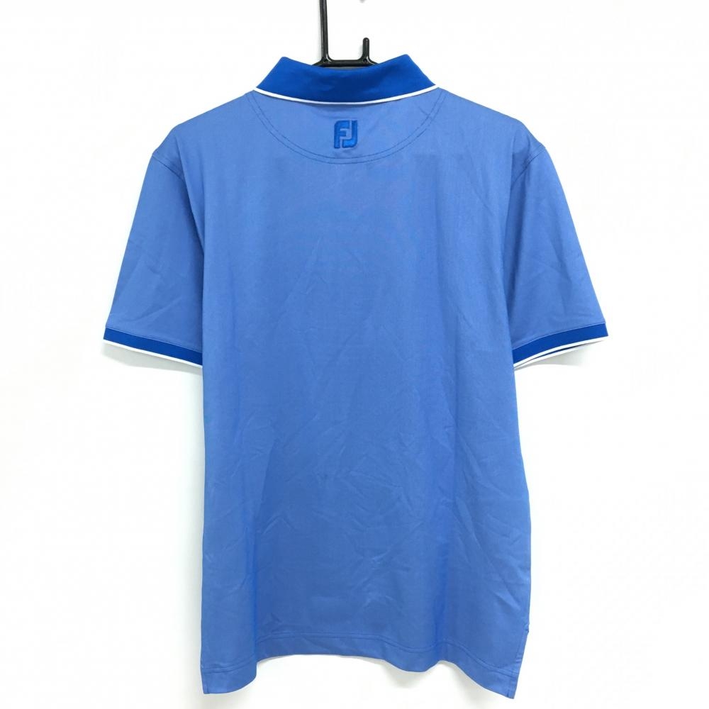 【超美品】フットジョイ 半袖ポロシャツ ブルー×白 襟・袖口白ライン メンズ L ゴルフウェア FootJoy