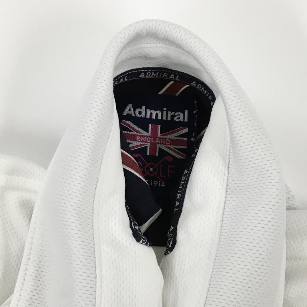 アドミラル 長袖ポロシャツ 白×ネイビー 襟裏斜めストライプ ビッグロゴ刺しゅう レディース M ゴルフウェア Admiral
