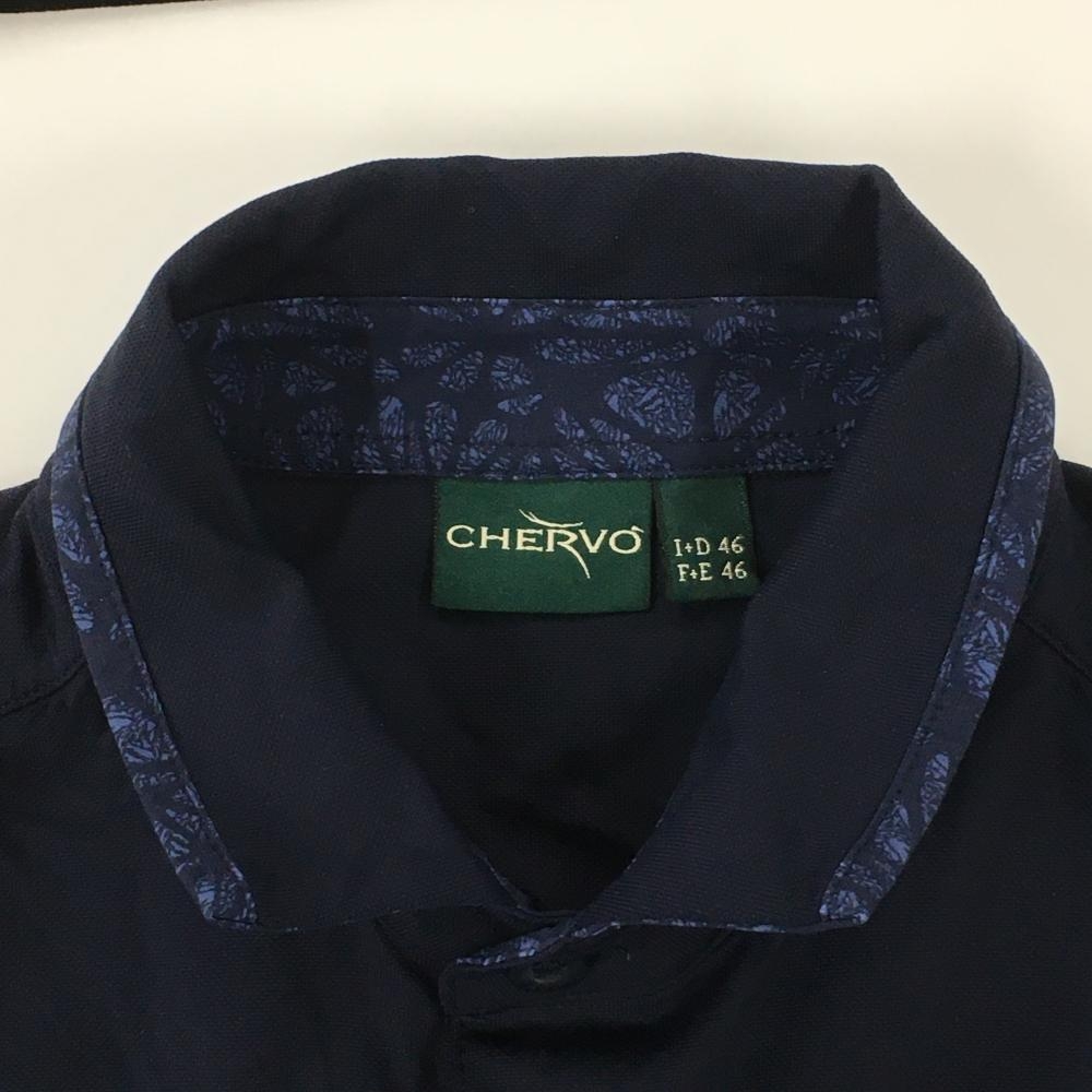 【美品】シェルボ 半袖ポロシャツ ネイビー 襟一部総柄 メンズ XS ゴルフウェア CHERVO