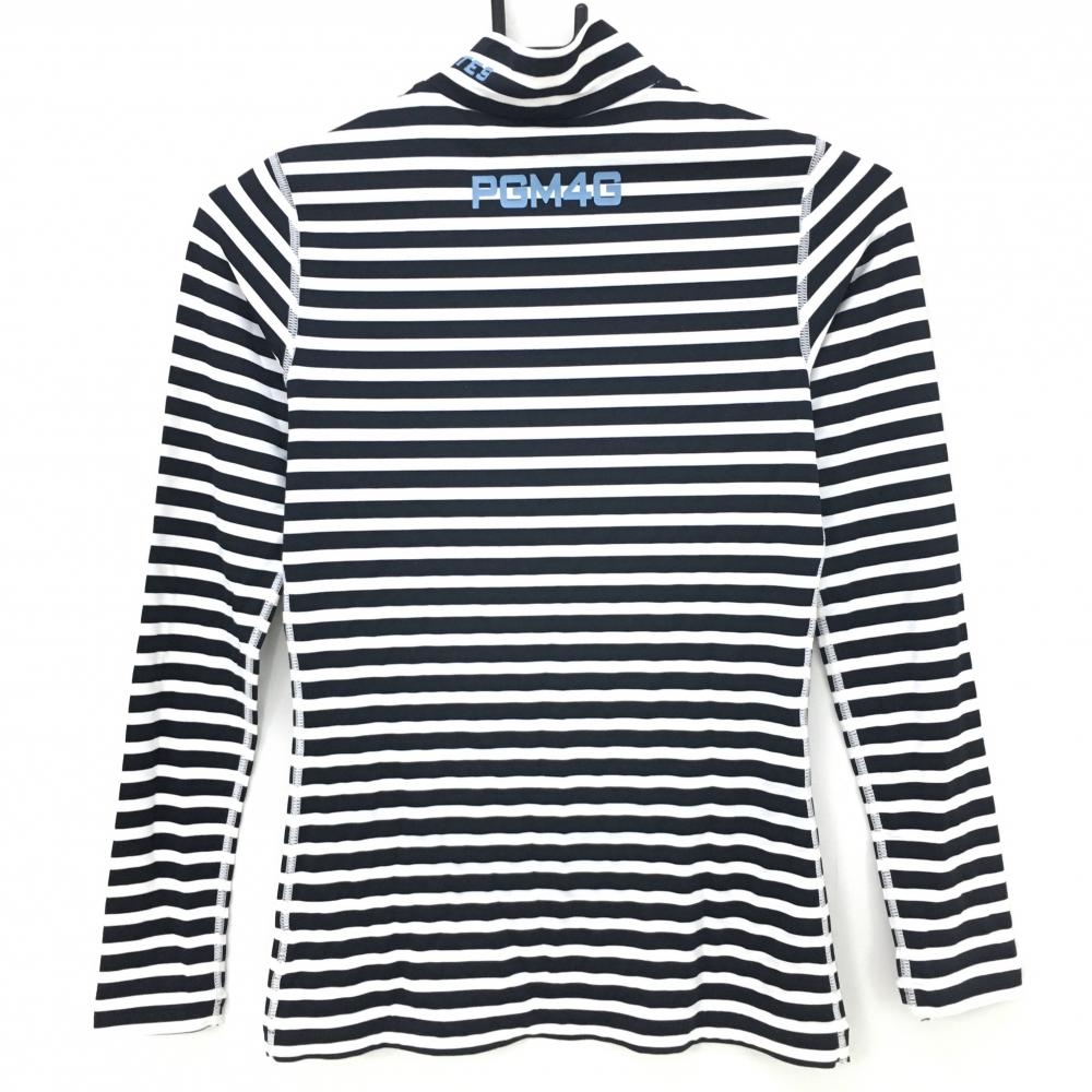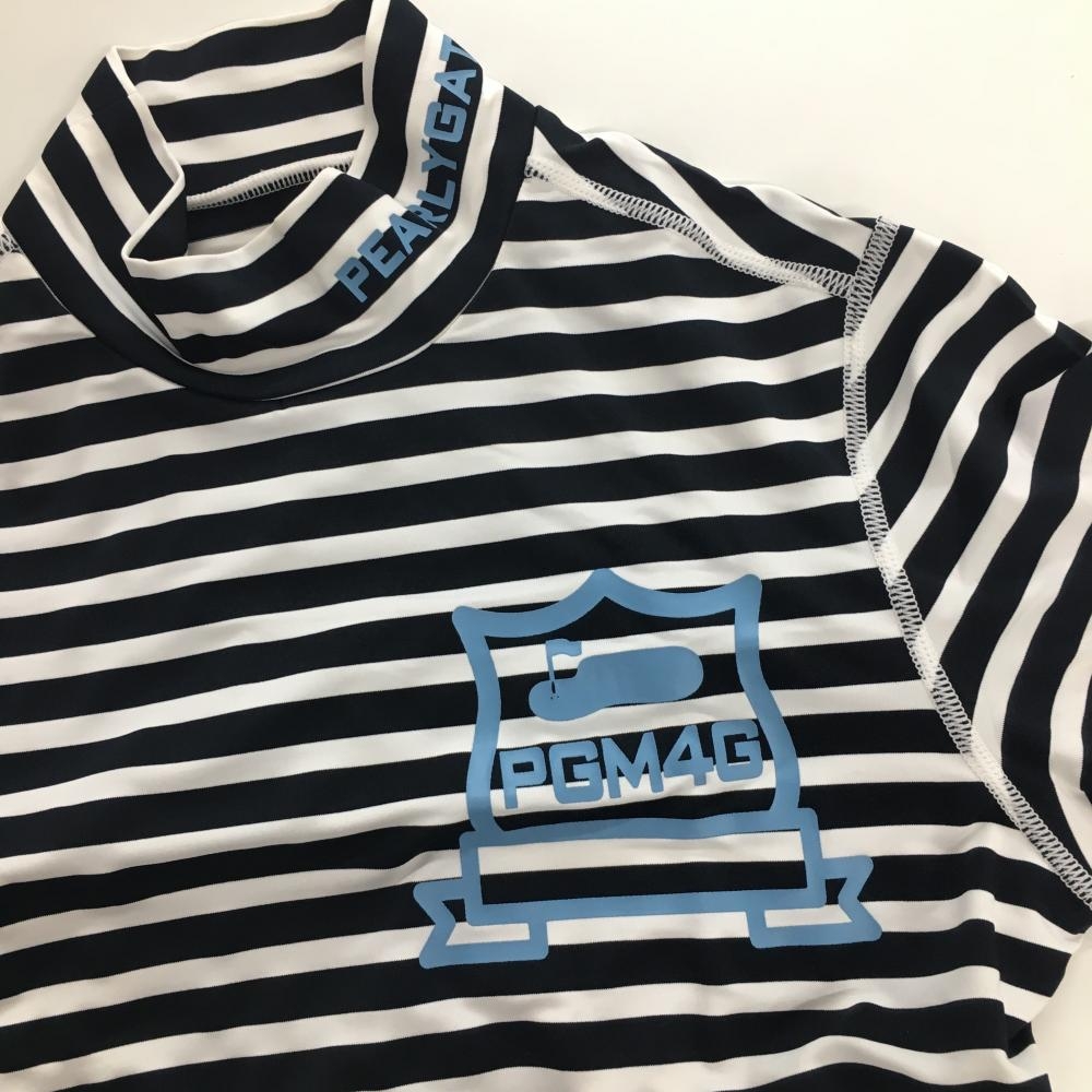 【超美品】パーリーゲイツ ハイネックインナーシャツ 黒×白 ボーダー 袖ロゴ レディース 0(S) ゴルフウェア PEARLY GATES