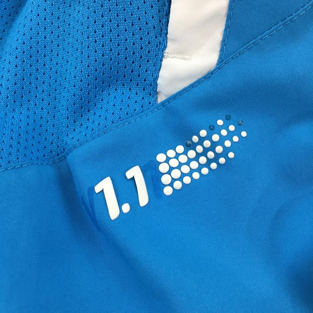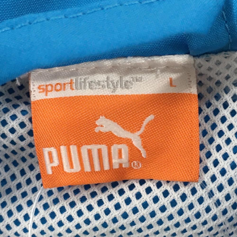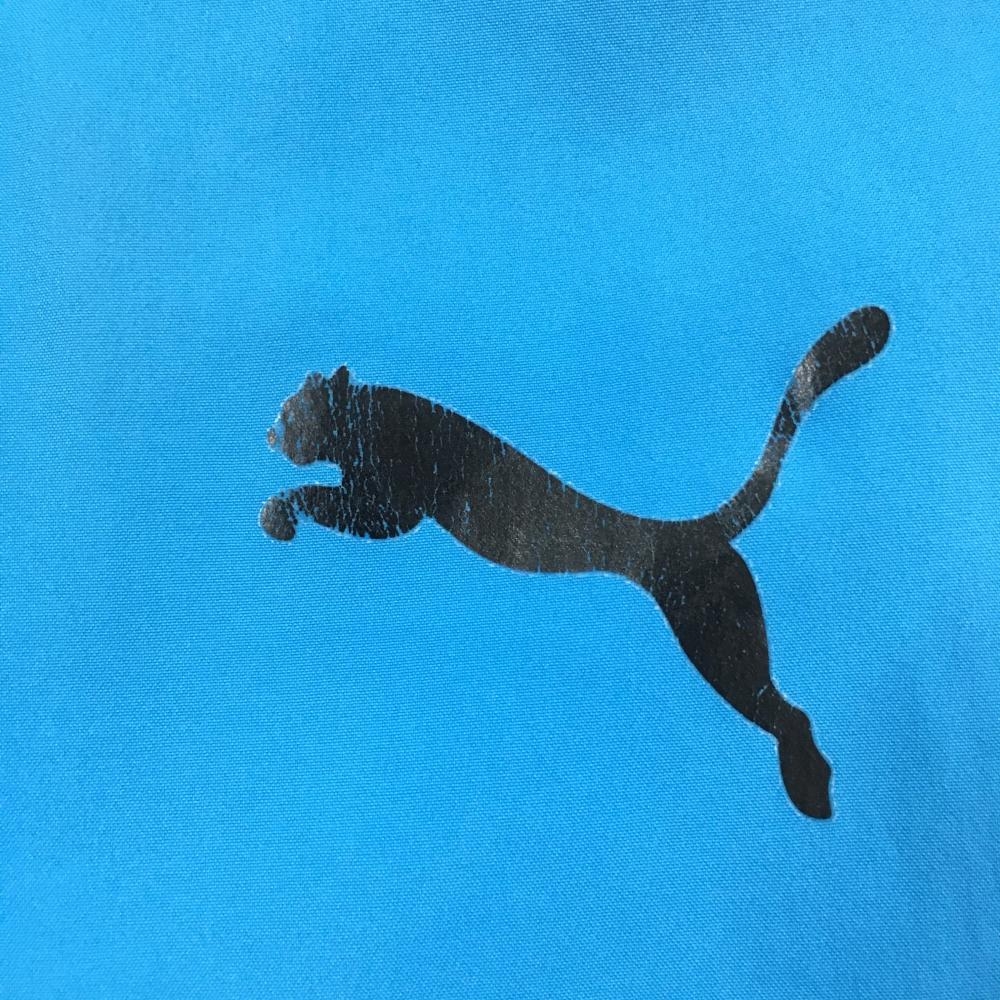 プーマ ジャケットブルゾン ライトブルー×白 サイド切替 裏地メッシュ ロゴプリント メンズ L ゴルフウェア PUMA