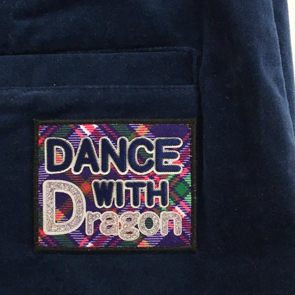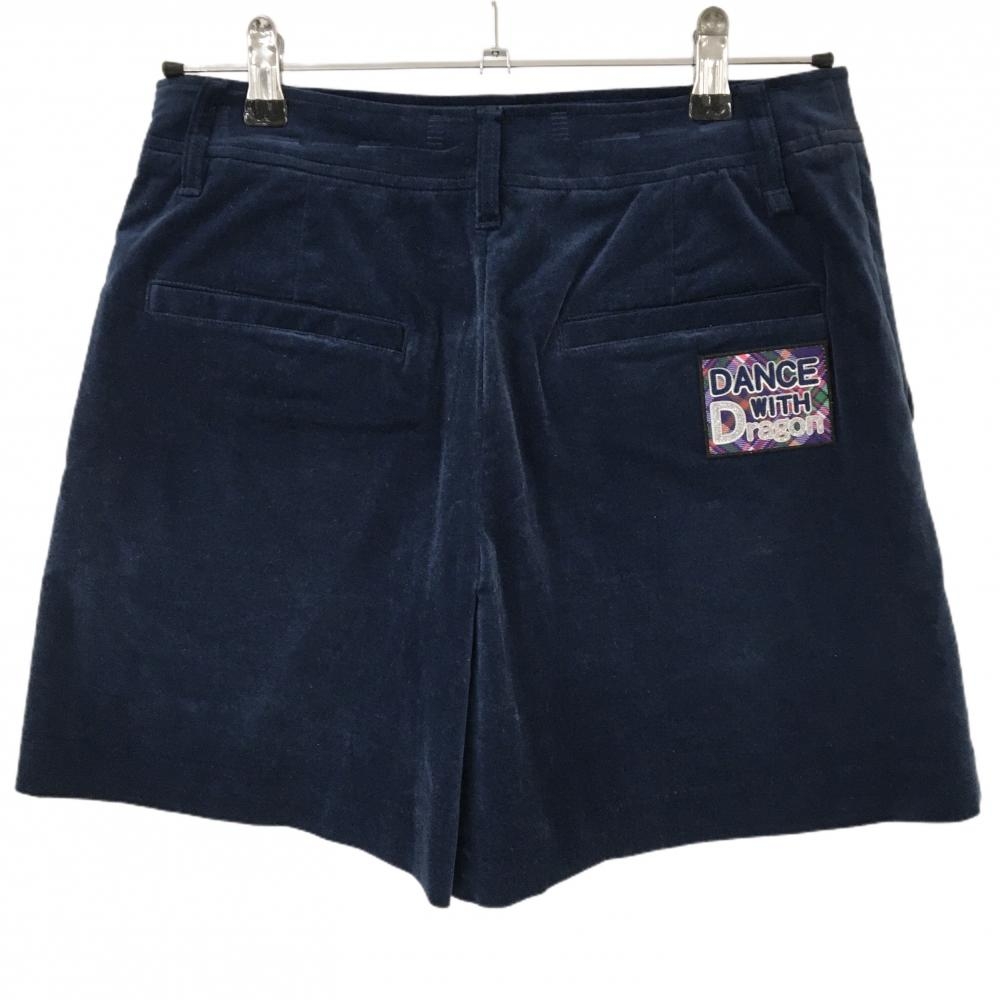 【美品】ダンスウィズドラゴン キュロットスカート ネイビー ベロア調 ロゴワッペン レディース 2(M) ゴルフウェア Dance With Dragon