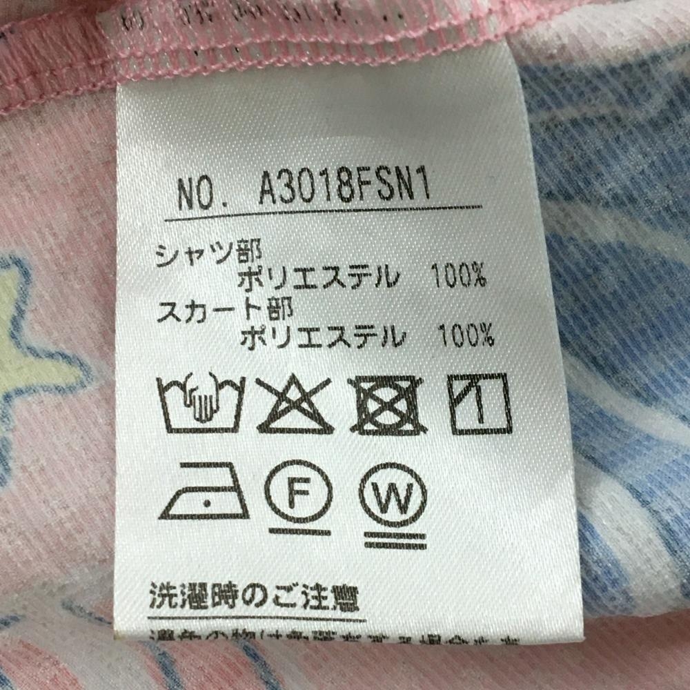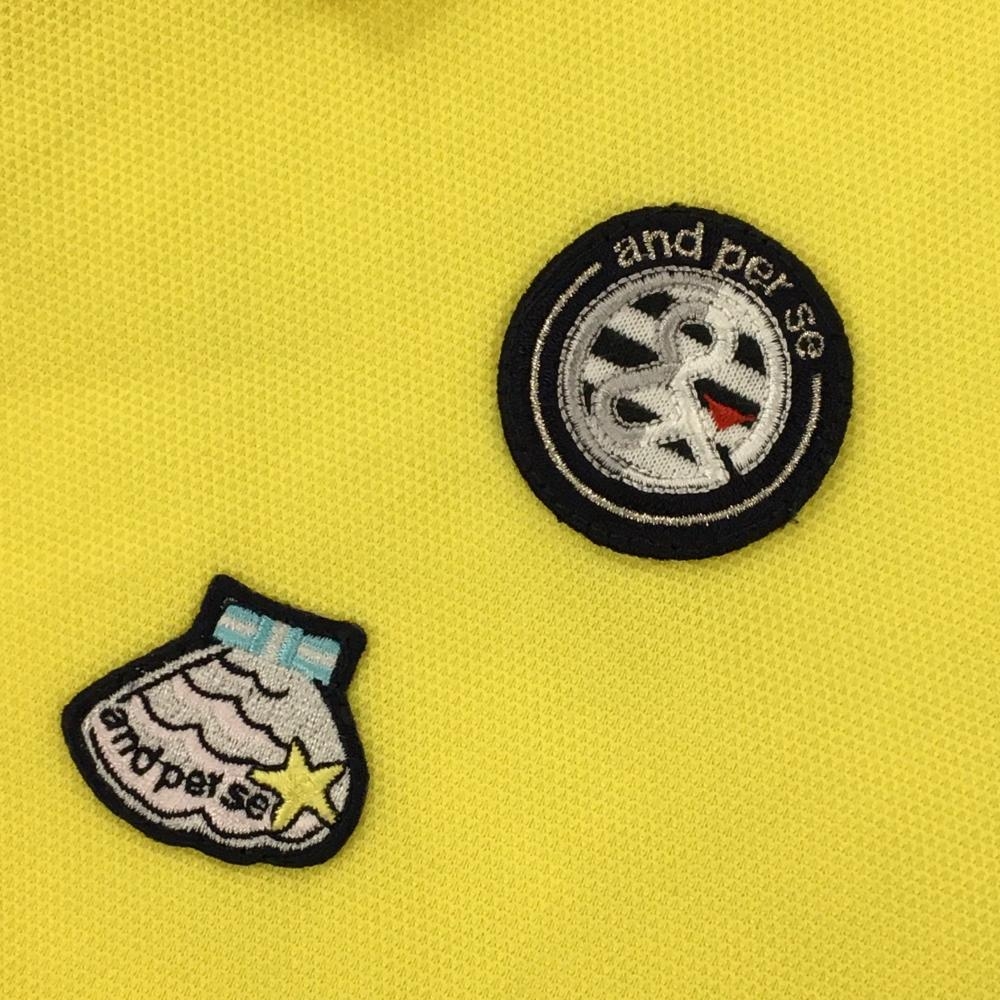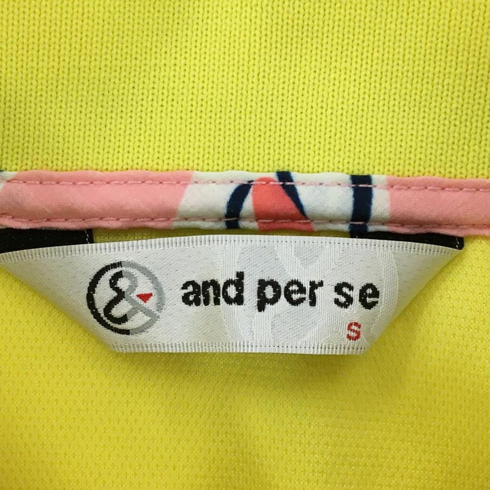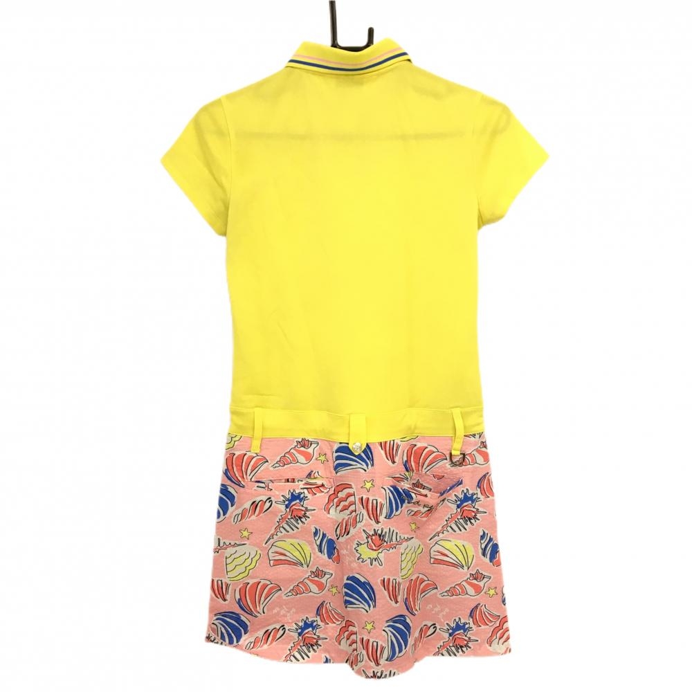 【超美品】アンパスィ 半袖ポロワンピース イエロー×ピンク スカート部シェル柄&サッカー生地 レディース S ゴルフウェア and per se