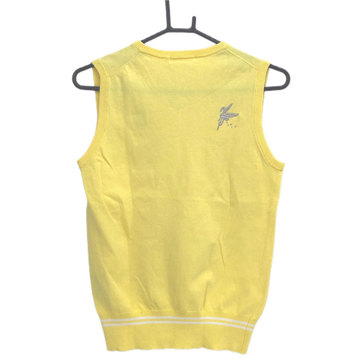 フェアリーパウダー ニットベスト イエロー コットン混 裾ライン レディース 3(L) ゴルフウェア FAIRY POWDER